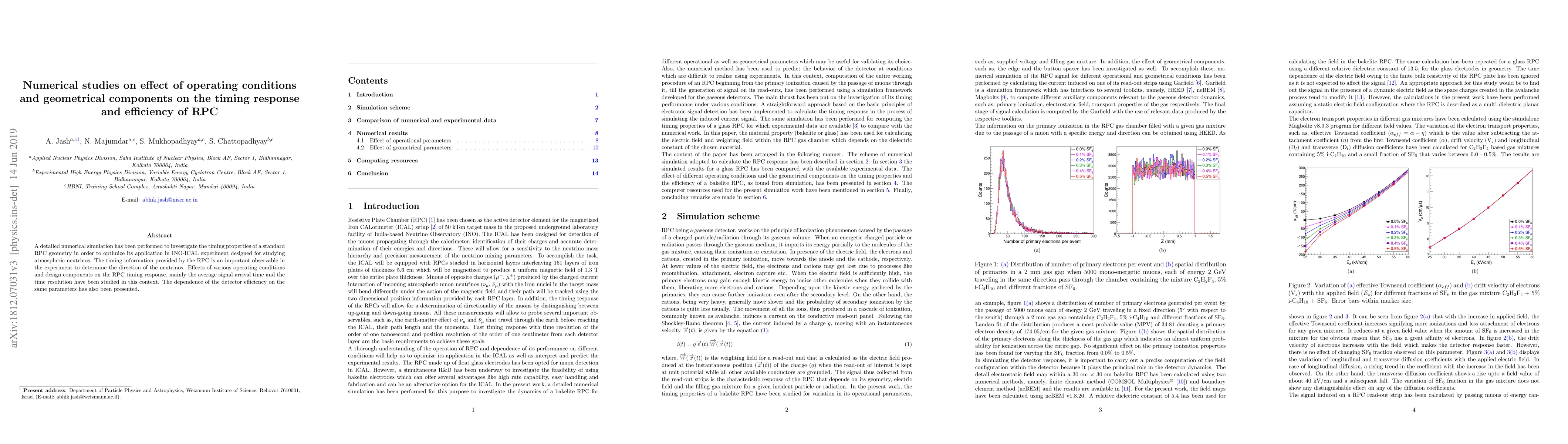 A detailed numerical simulation has been performed to investigate the timing properties of a standard RPC geometry in order to optimize its application in INO-ICAL experiment designed for studying atmospheric neutrinos. The timing information provided by the RPC is an important observable in the experiment to determine the direction of the neutrinos. Effects of various operating conditions and design components on the RPC timing response, mainly the average signal arrival time and the time resolution have been studied in this context. The dependence of the detector efficiency on the same parameters has also been presented.