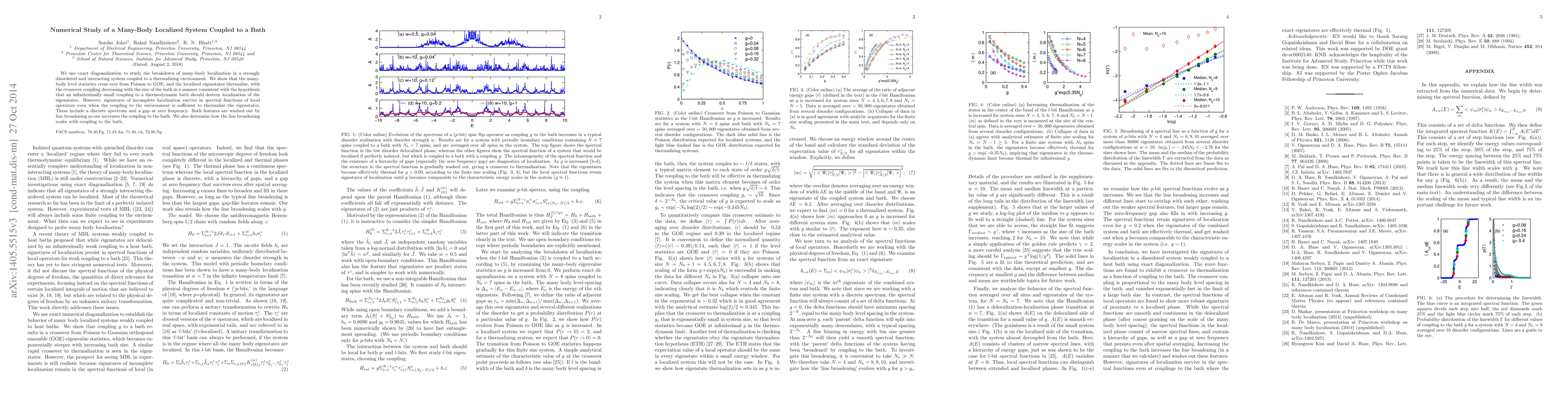 This paper investigates the breakdown of many-body localization in a strongly disordered system when coupled to a thermalizing environment, revealing a transition from Poisson to GOE level statistics. Despite the coupling, incomplete localization persists, evidenced by a discrete spectrum and zero-frequency gap, which diminish with increased coupling.