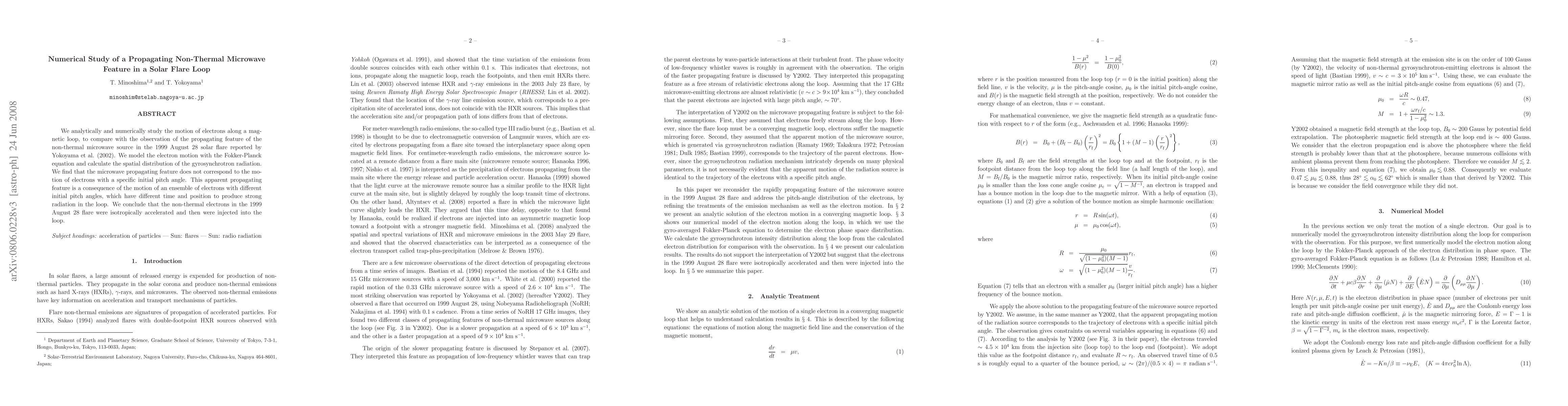 We analytically and numerically study the motion of electrons along a magnetic loop, to compare with the observation of the propagating feature of the non-thermal microwave source in the 1999 August 28 solar flare reported by Yokoyama et al. (2002). We model the electron motion with the Fokker-Planck equation and calculate the spatial distribution of the gyrosynchrotron radiation. We find that the microwave propagating feature does not correspond to the motion of electrons with a specific initial pitch angle. This apparent propagating feature is a consequence of the motion of an ensemble of electrons with different initial pitch angles, which have different time and position to produce strong radiation in the loop. We conclude that the non-thermal electrons in the 1999 August 28 flare were isotropically accelerated and then are injected into the loop.