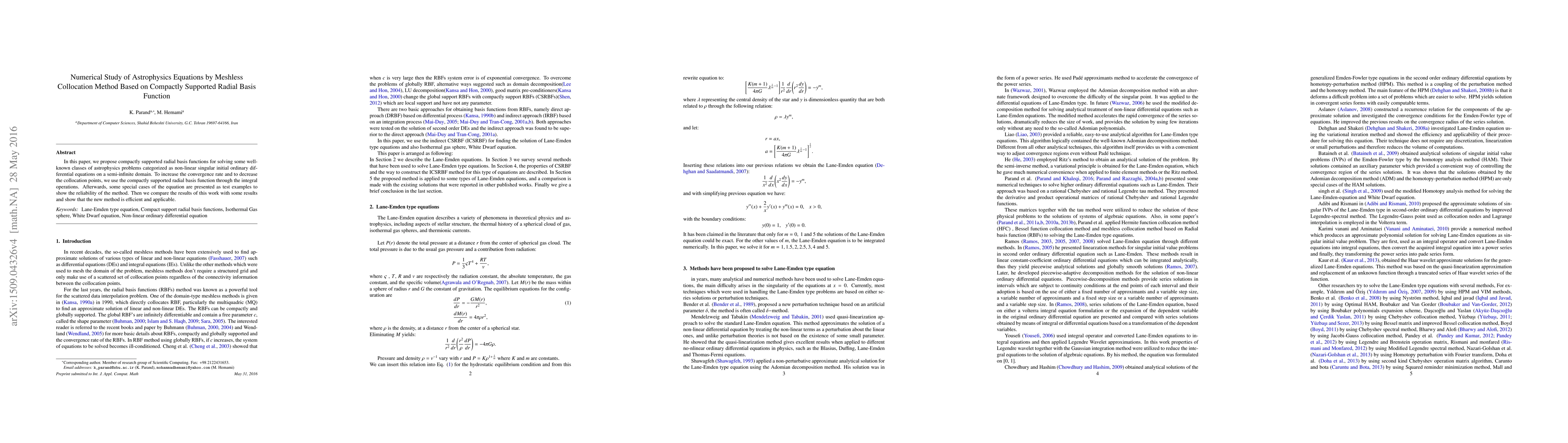 In this paper, we propose compactly supported radial basis functions for solving some well- known classes of astrophysics problems categorized as non-linear singular initial ordinary dif- ferential equations on a semi-infinite domain. To increase the convergence rate and to decrease the collocation points, we use the compactly supported radial basis function through the integral operations. Afterwards, some special cases of the equation are presented as test examples to show the reliability of the method. Then we compare the results of this work with some results and show that the new method is efficient and applicable