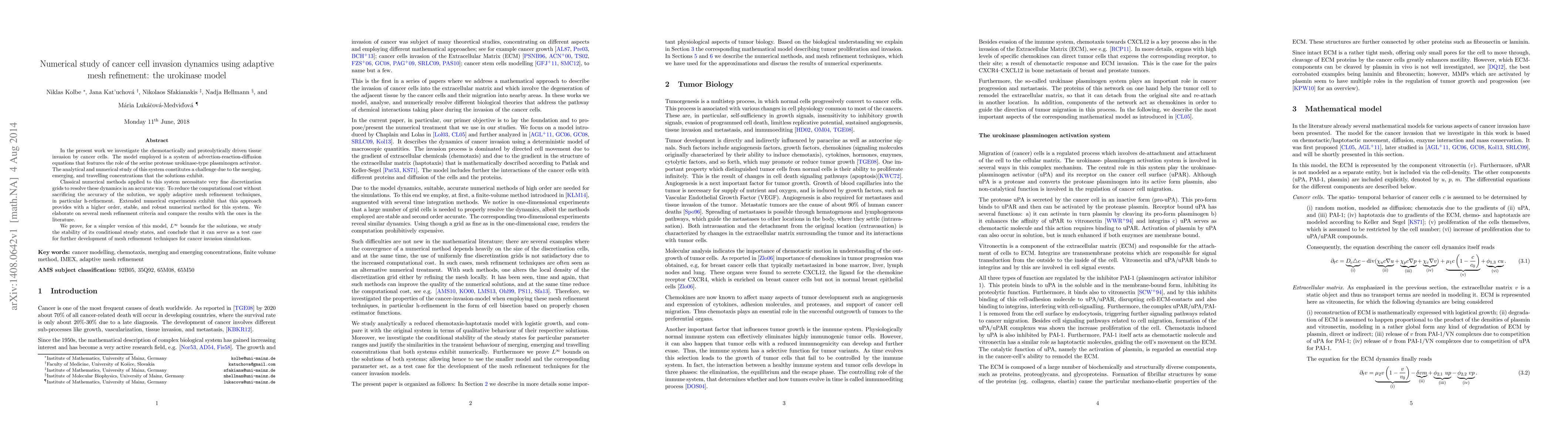 This paper investigates cancer cell invasion dynamics using adaptive mesh refinement techniques, focusing on the urokinase model. The study demonstrates that h-refinement provides a stable, robust, and higher-order numerical method for resolving complex chemotactic and proteolytic tissue invasion patterns, reducing computational costs effectively.