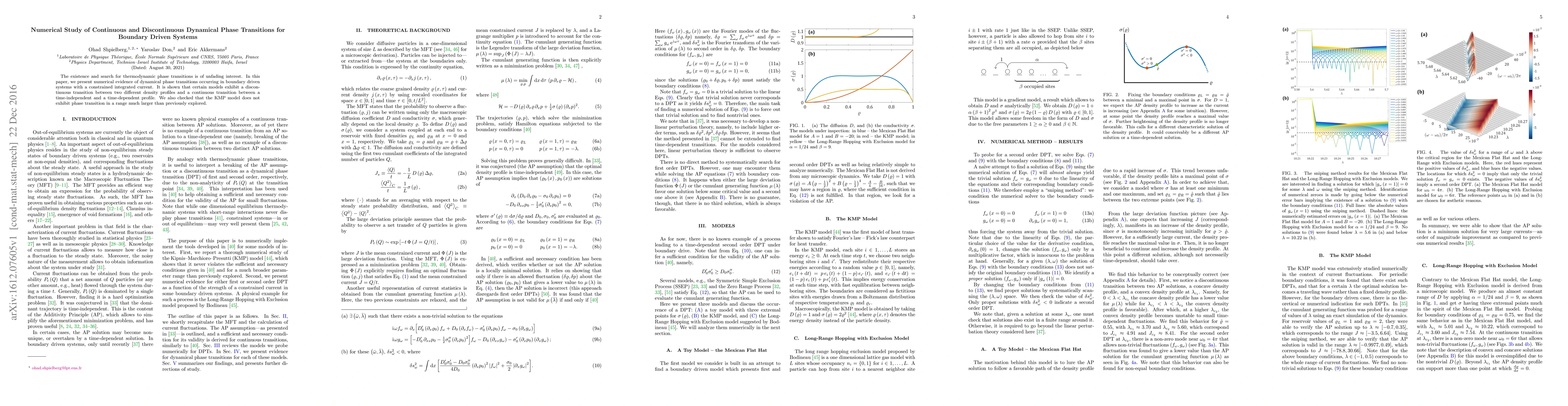 This paper presents numerical evidence of dynamical phase transitions in boundary driven systems, showing both discontinuous transitions between density profiles and continuous transitions between time-independent and time-dependent profiles. Additionally, it confirms that the KMP model does not exhibit phase transitions over a significantly larger range than previously studied.