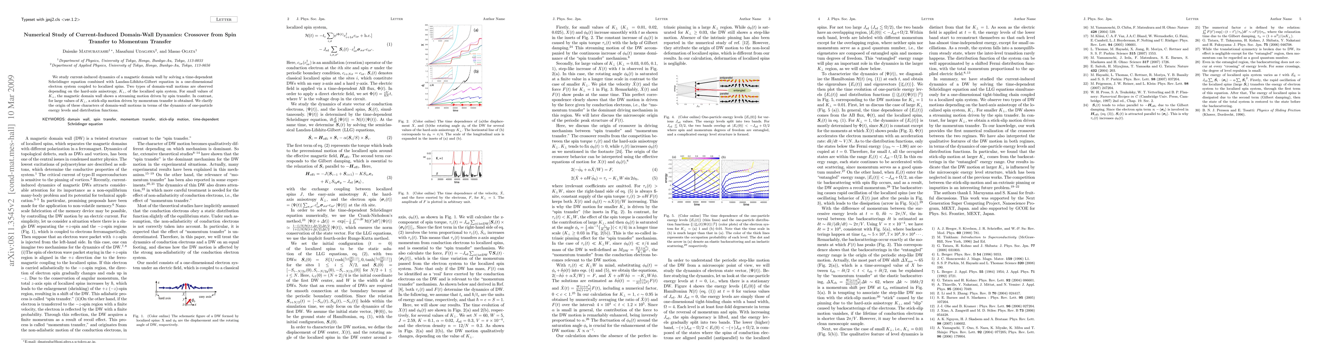 This paper investigates the dynamics of a magnetic domain wall under current-induced motion, revealing a transition from spin-transfer-driven streaming to momentum-transfer-driven stick-slip motion as a function of hard-axis anisotropy. The study combines time-dependent Schrödinger and Landau-Lifshitz-Gilbert equations to elucidate the underlying mechanisms.