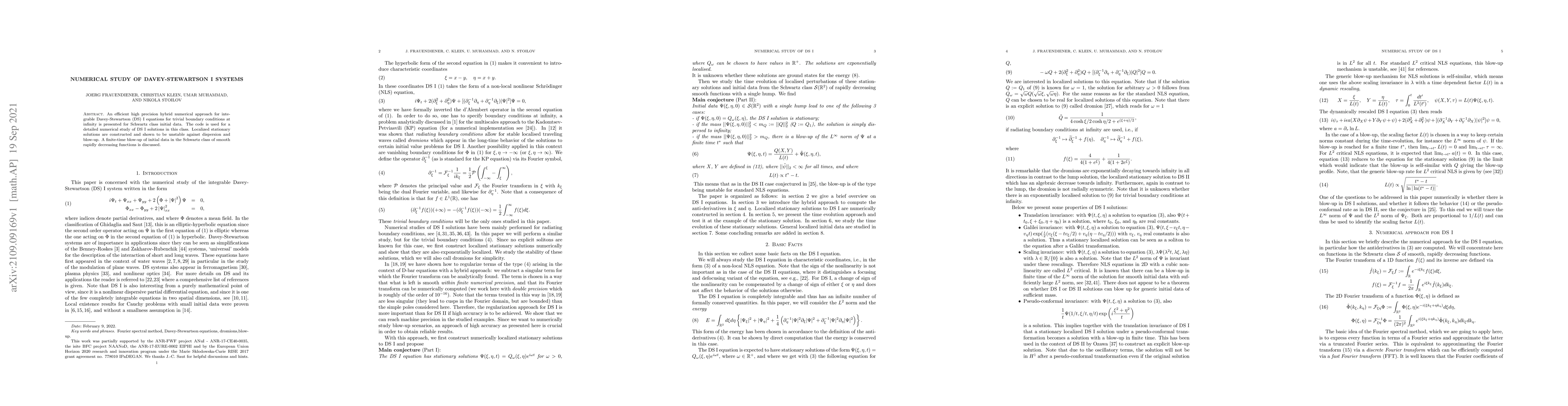 This paper presents a high-precision hybrid numerical method for solving Davey-Stewartson I equations, focusing on Schwartz class initial data. The study reveals that localized stationary solutions are unstable, leading to finite-time blow-up.