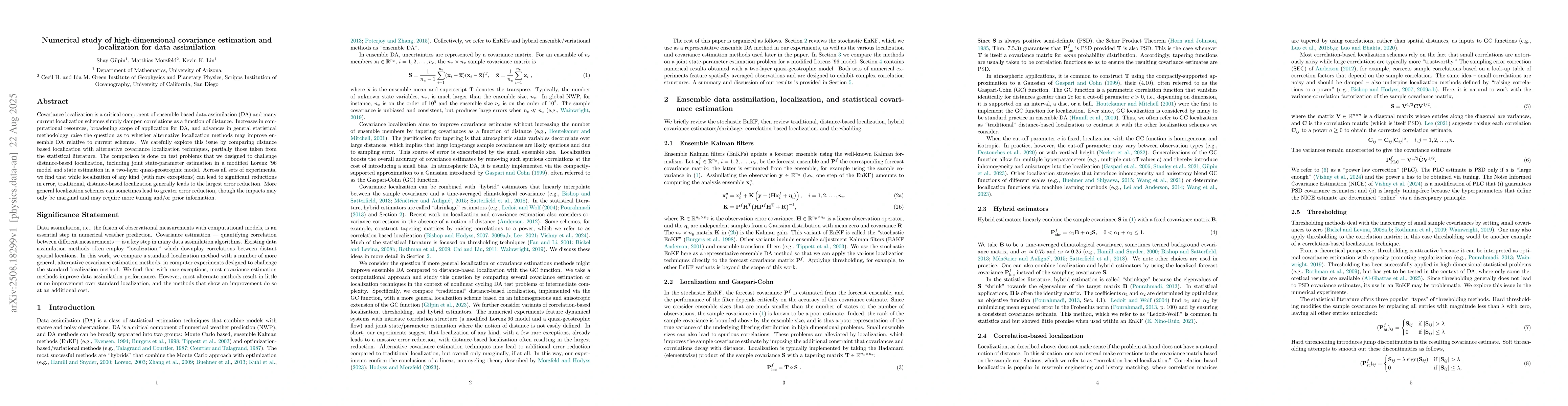 Covariance localization is a critical component of ensemble-based data assimilation (DA) and many current localization schemes simply dampen correlations as a function of distance. Increases in computational resources, broadening scope of application for DA, and advances in general statistical methodology raise the question as to whether alternative localization methods may improve ensemble DA relative to current schemes. We carefully explore this issue by comparing distance based localization with alternative covariance localization techniques, partially those taken from the statistical literature. The comparison is done on test problems that we designed to challenge distance-based localization, including joint state-parameter estimation in a modified Lorenz '96 model and state estimation in a two-layer quasi-geostrophic model. Across all sets of experiments, we find that while localization of any kind (with rare exceptions) can lead to significant reductions in error, traditional, distance-based localization generally leads to the largest error reduction. More general localization schemes can sometimes lead to greater error reduction, though the impacts may only be marginal and may require more tuning and/or prior information.