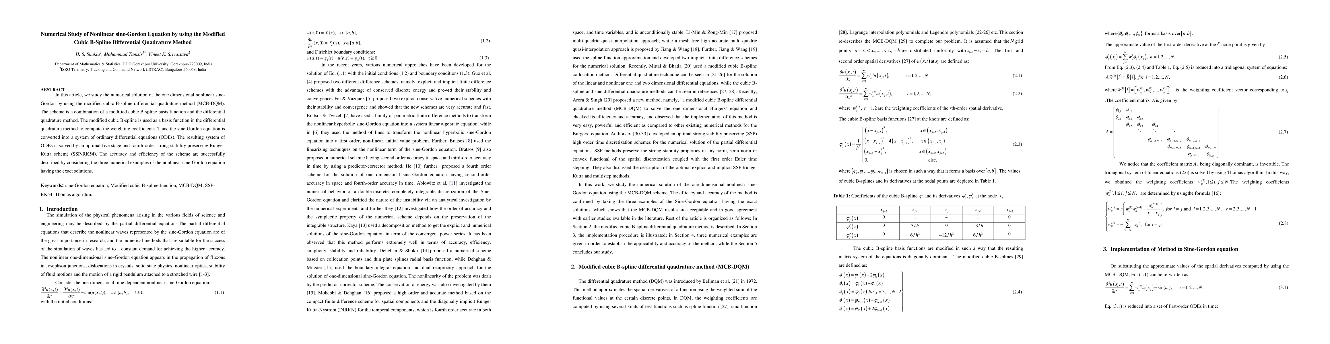 This paper presents a numerical method for solving the one-dimensional nonlinear sine-Gordon equation using the modified cubic B-spline differential quadrature method. The method converts the equation into a system of ODEs, which is then solved using a five-stage, fourth-order Runge-Kutta scheme, demonstrating accuracy and efficiency through numerical examples.