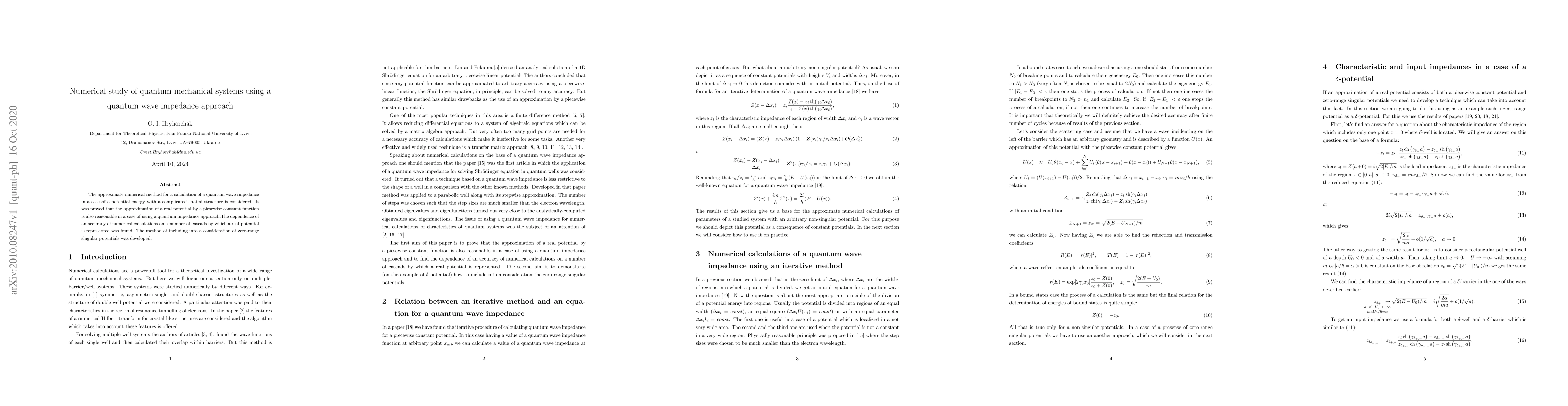 The approximate numerical method for a calculation of a quantum wave impedance in a case of a potential energy with a complicated spatial structure is considered. It was proved that the approximation of a real potential by a piesewise constant function is also reasonable in a case of using a quantum impedance approach.The dependence of an accuracy of numerical calculations on a number of cascads by which a real potential is represented was found. The method of including into a consideration of zero-range singular potentials was developed.
