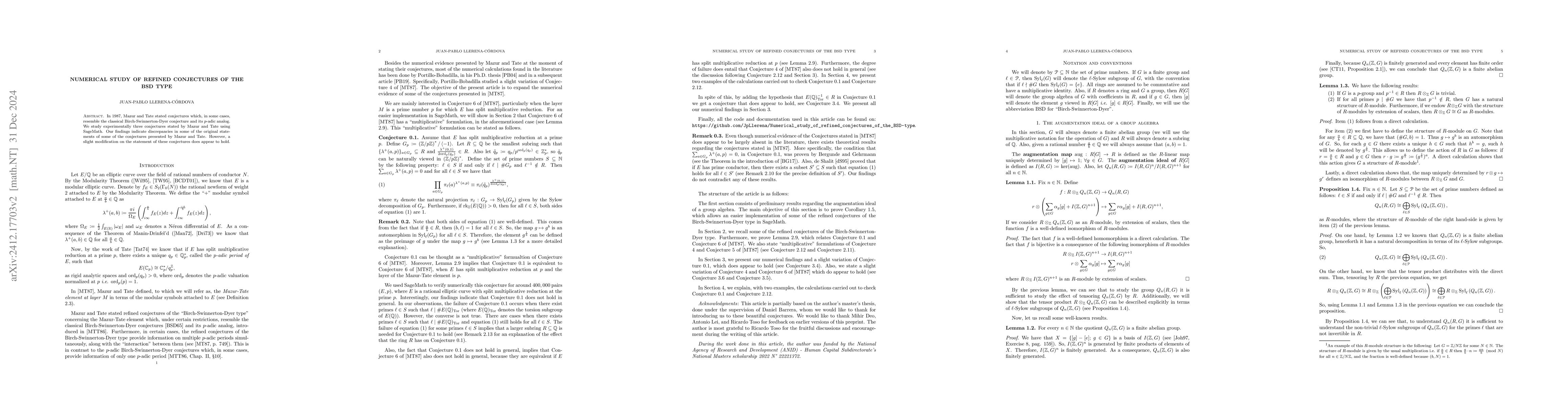Summary: This paper uses computational tools to investigate conjectures by Mazur and Tate that echo the Birch-Swinnerton-Dyer conjecture. Experimental results with SageMath reveal discrepancies in the original conjectures, but slight modifications to their statements appear to be valid.