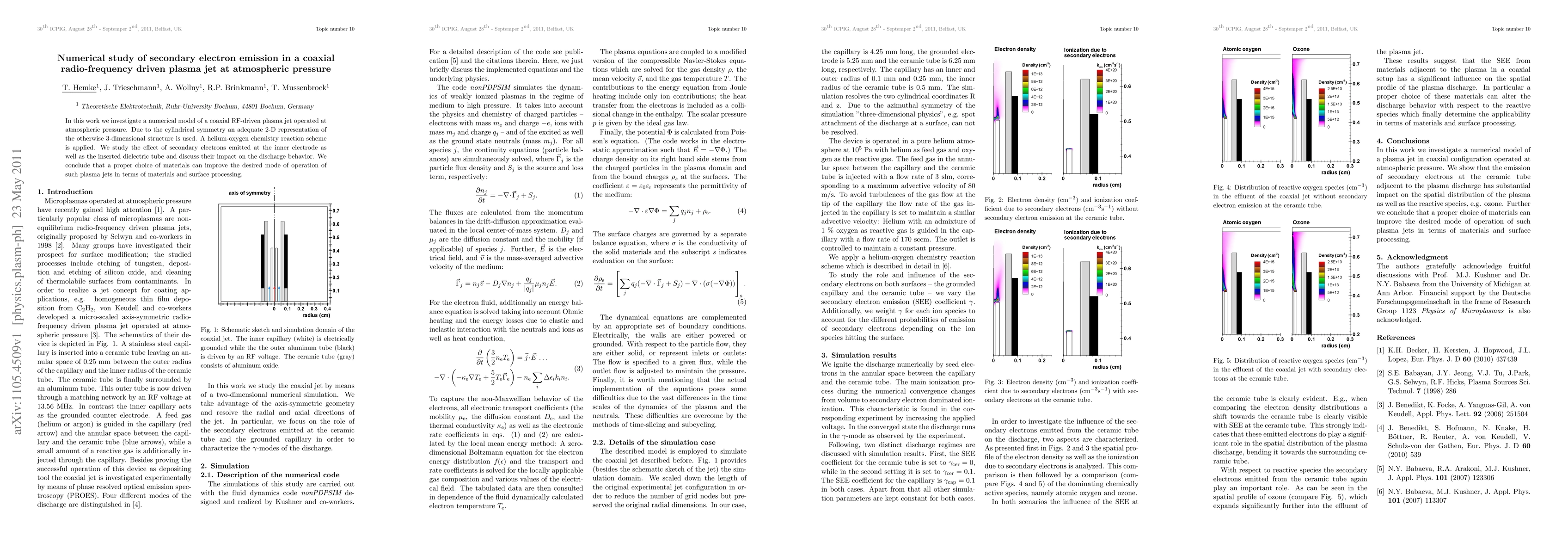This paper presents a numerical study of a coaxial radio-frequency driven plasma jet at atmospheric pressure, focusing on secondary electron emission from the inner electrode and dielectric tube. The findings suggest that material selection can enhance the operational efficiency and desired effects of such plasma jets.