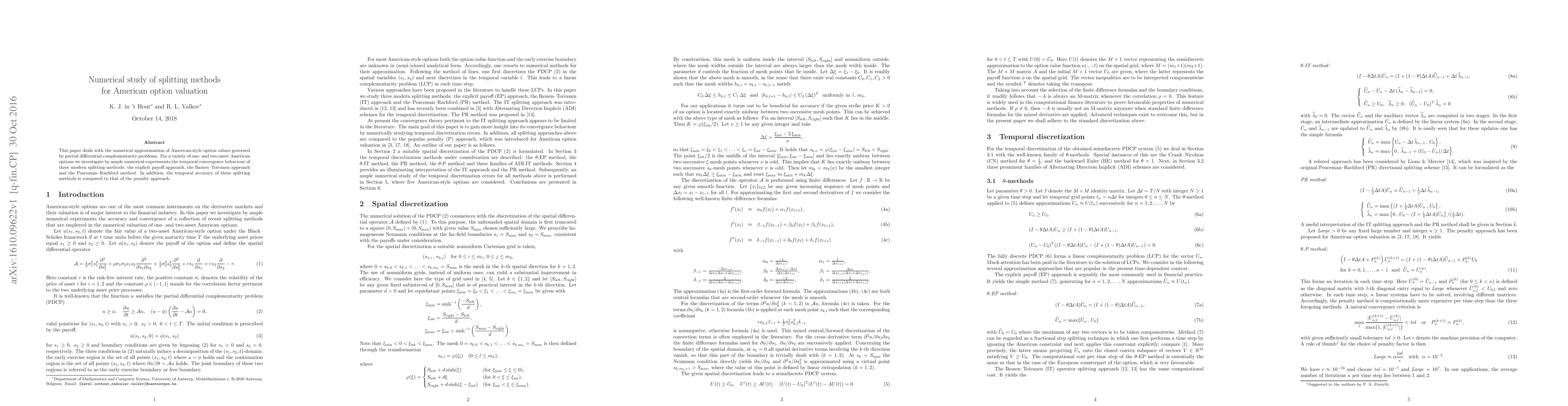 This paper compares the performance of three splitting methods for valuing American-style options, finding that the Ikonen-Toivanen approach exhibits superior temporal convergence and accuracy compared to other methods.
