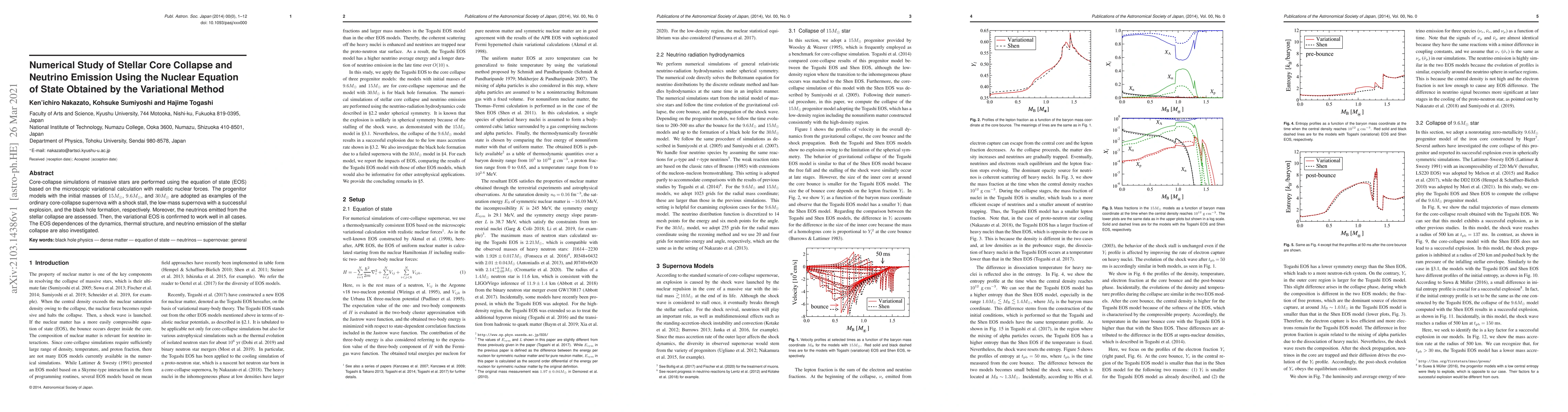 This paper investigates core-collapse simulations of massive stars using a nuclear equation of state derived from variational methods, examining progenitor models of different masses. The study confirms the effectiveness of the variational EOS in predicting dynamics, thermal structure, and neutrino emission during stellar collapse.