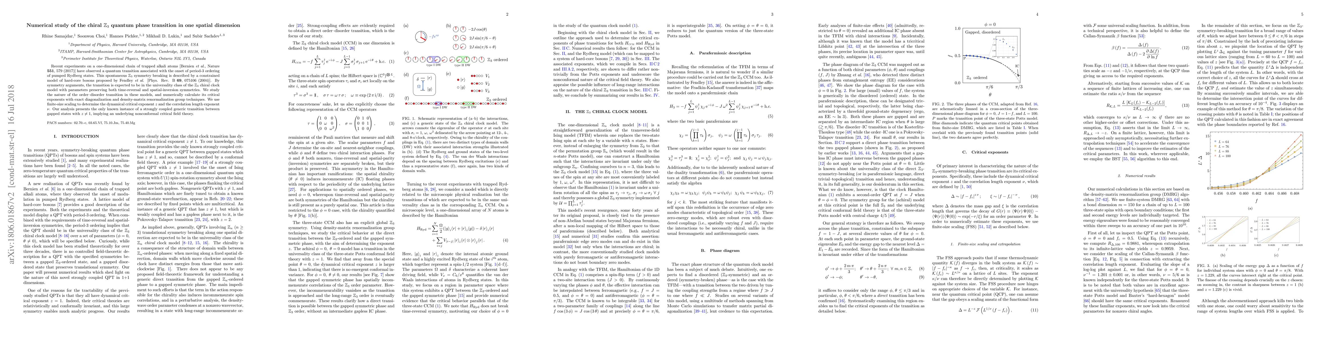 This paper numerically investigates the chiral $\mathbb{Z}_3$ quantum phase transition in one spatial dimension using exact diagonalization and density-matrix renormalization group techniques. The study reveals a nonconformal critical field theory with a dynamical critical exponent $z \ne 1$, marking a unique strongly-coupled transition between gapped states.