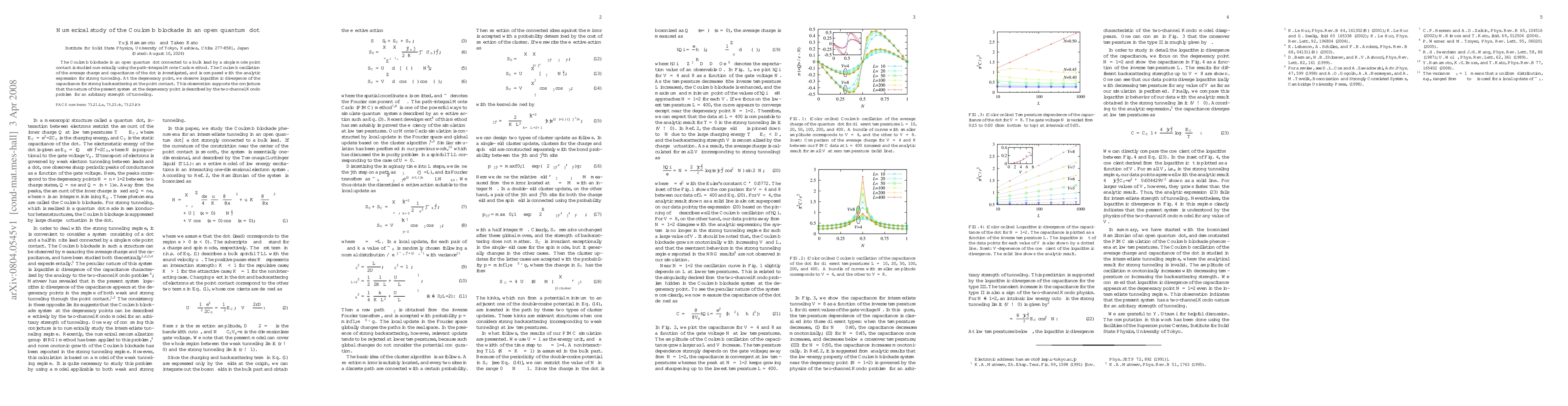 This paper numerically investigates the Coulomb blockade in an open quantum dot using the path-integral Monte Carlo method, finding a logarithmic divergence in capacitance at the degeneracy point, which supports the two-channel Kondo problem description for varying tunneling strengths.