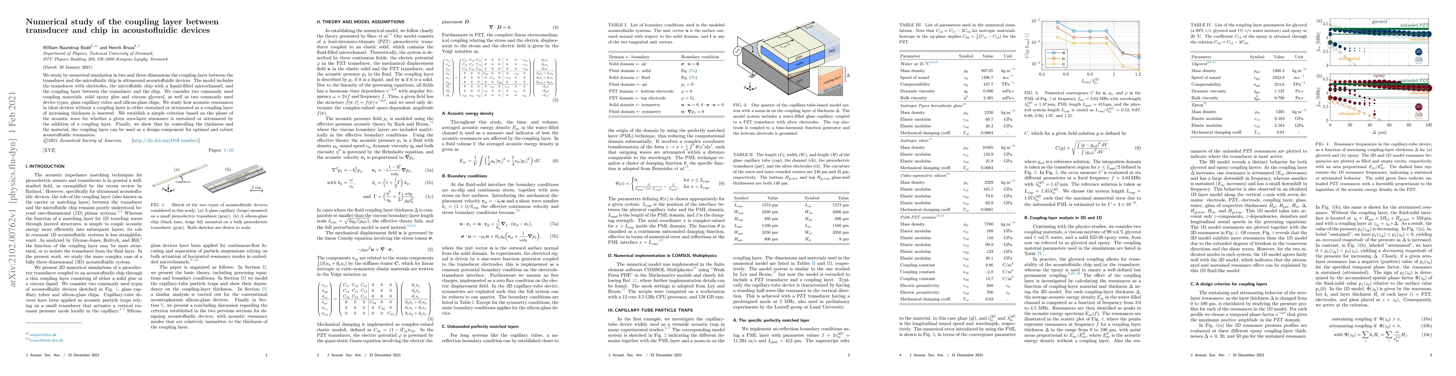 Researchers studied how a coupling layer between a transducer and microfluidic chip affects acoustic resonances in acoustofluidic devices, finding that the layer can be used to control resonance with varying thickness and material.