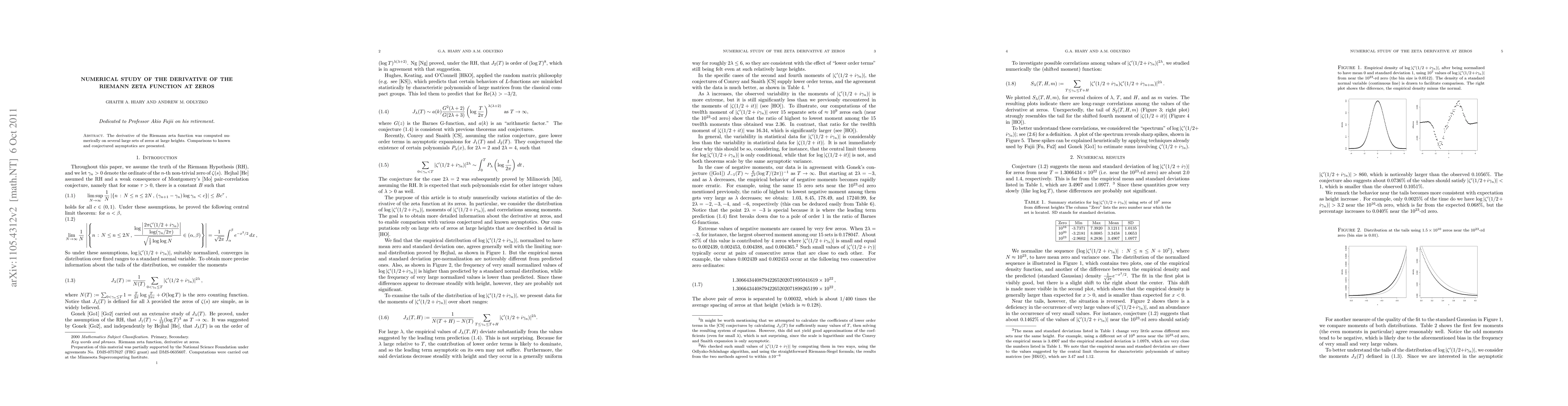 The derivative of the Riemann zeta function was computed numerically on several large sets of zeros at large heights. Comparisons to known and conjectured asymptotics are presented.