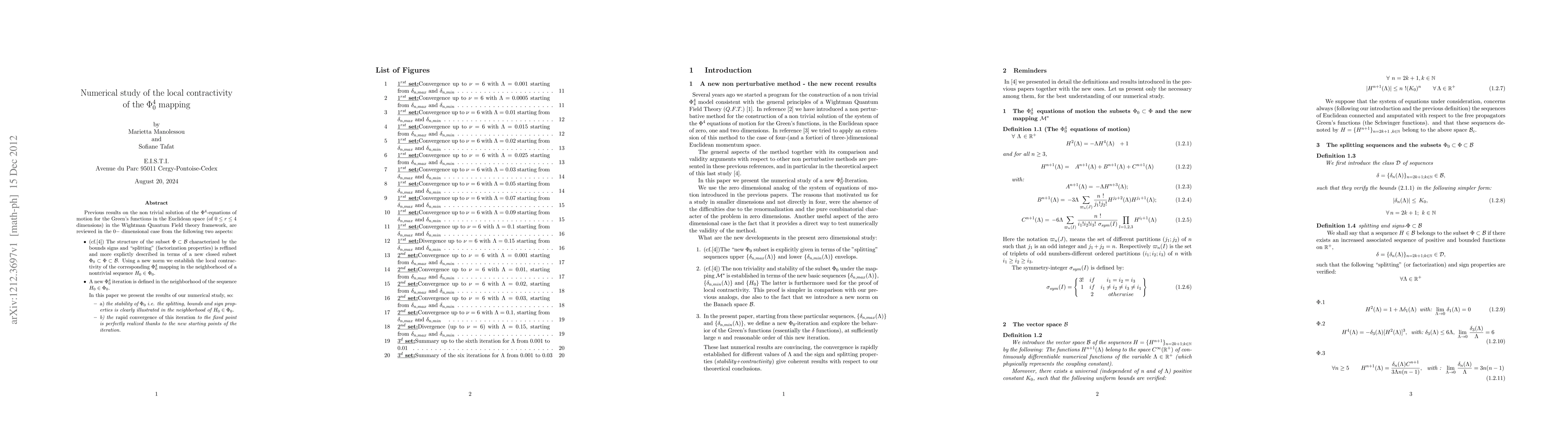 This paper numerically investigates the local contractivity of the $\Phi_0^4$ mapping within the Wightman Quantum Field theory framework. It demonstrates the stability of the subset $\Phi_0$ and shows rapid convergence of a newly defined $\Phi_0^4$ iteration near a nontrivial sequence $H_0\in \Phi_0$.