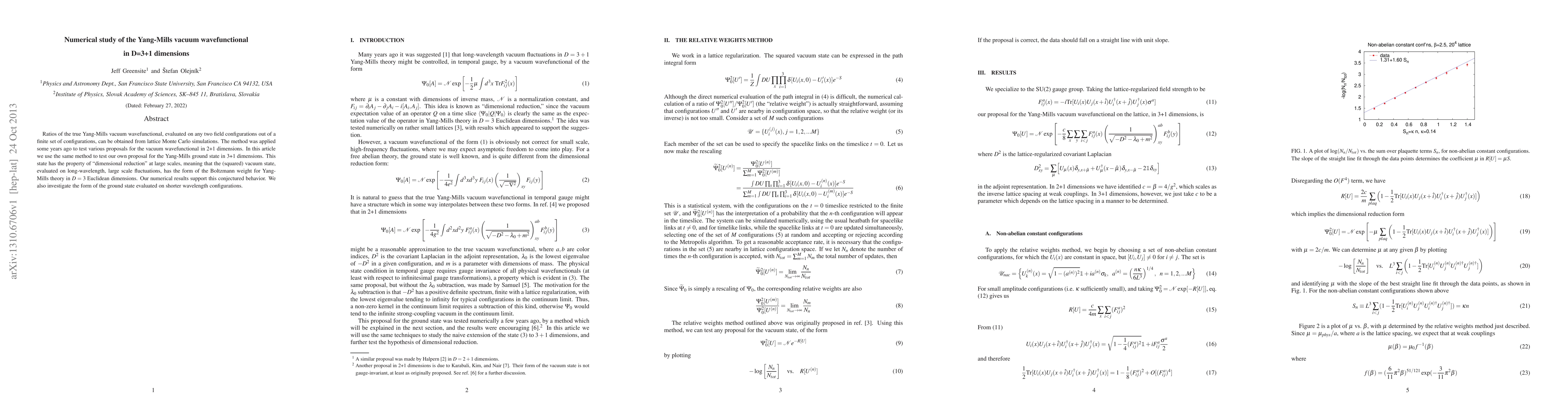 The paper presents a numerical approach to test a proposed vacuum wavefunctional in 3+1 dimensions, providing evidence for dimensional reduction at large scales.