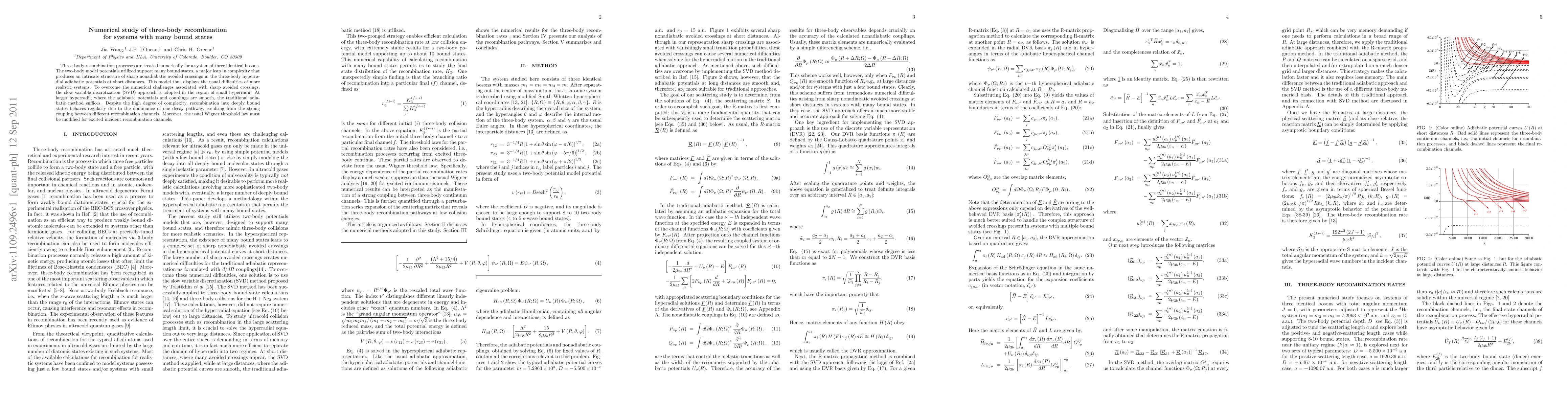 Three-body recombination processes are treated numerically for a system of three identical bosons. The two-body model potentials utilized support many bound states, a major leap in complexity that produces an intricate structure of sharp nonadiabatic avoided crossings in the three-body hyperradial adiabatic potentials at short distances. This model thus displays the usual difficulties of more realistic systems. To overcome the numerical challenges associated with sharp avoided crossings, the slow variable discretization (SVD) approach is adopted in the region of small hyperradii. At larger hyperradii, where the adiabatic potentials and couplings are smooth, the traditional adiabatic method suffices. Despite the high degree of complexity, recombination into deeply bound states behaves regularly due to the dominance of one decay pathway, resulting from the strong coupling between different recombination channels. Moreover, the usual Wigner threshold law must be modified for excited incident recombination channels.