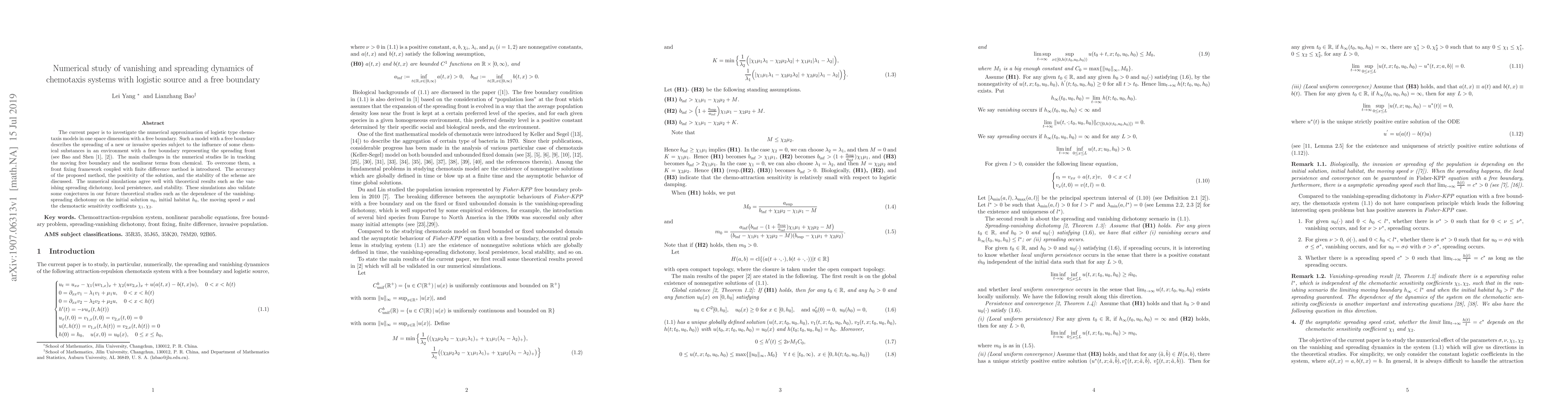 The current paper is to investigate the numerical approximation of logistic type chemotaxis models in one space dimension with a free boundary. Such a model with a free boundary describes the spreading of a new or invasive species subject to the influence of some chemical substances in an environment with a free boundary representing the spreading front (see Bao and Shen [1], [2]). The main challenges in the numerical studies lie in tracking the moving free boundary and the nonlinear terms from chemical. To overcome them, a front fixing framework coupled with finite difference method is introduced. The accuracy of the proposed method, the positivity of the solution, and the stability of the scheme are discussed.The numerical simulations agree well with theoretical results such as the vanishing spreading dichotomy, local persistence, and stability. These simulations also validate some conjectures in our future theoretical studies such as the dependence of the vanishing-spreading dichotomy on the initial solution u0, initial habitat h0, the moving speed {\nu} and the chemotactic sensitivity coefficients \c{hi}1,\c{hi}2.