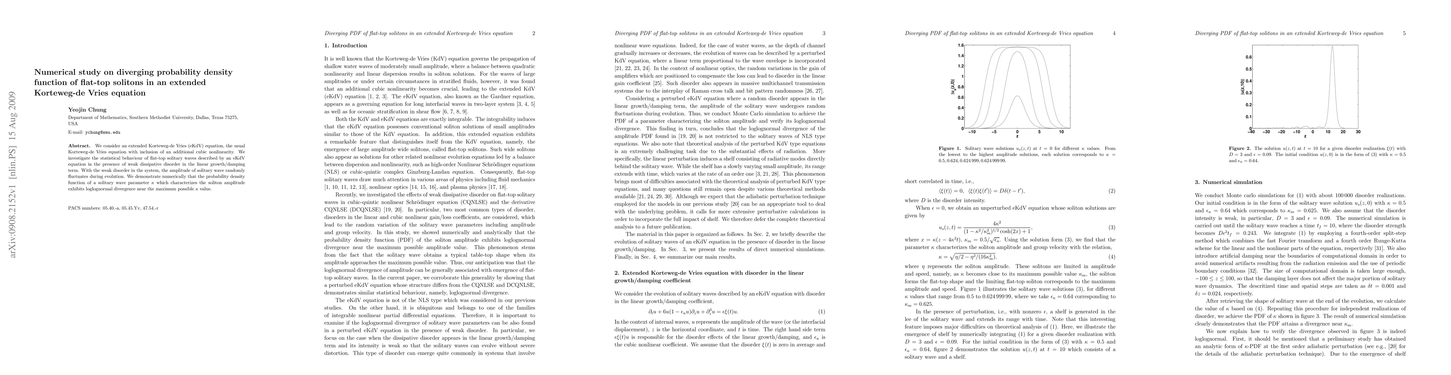 We consider an extended Korteweg-de Vries (eKdV) equation, the usual Korteweg-de Vries equation with inclusion of an additional cubic nonlinearity. We investigate the statistical behaviour of flat-top solitary waves described by an eKdV equation in the presence of weak dissipative disorder in the linear growth/damping term. With the weak disorder in the system, the amplitude of solitary wave randomly fluctuates during evolution. We demonstrate numerically that the probability density function of a solitary wave parameter $\kappa$ which characterizes the soliton amplitude exhibits loglognormal divergence near the maximum possible $\kappa$ value.