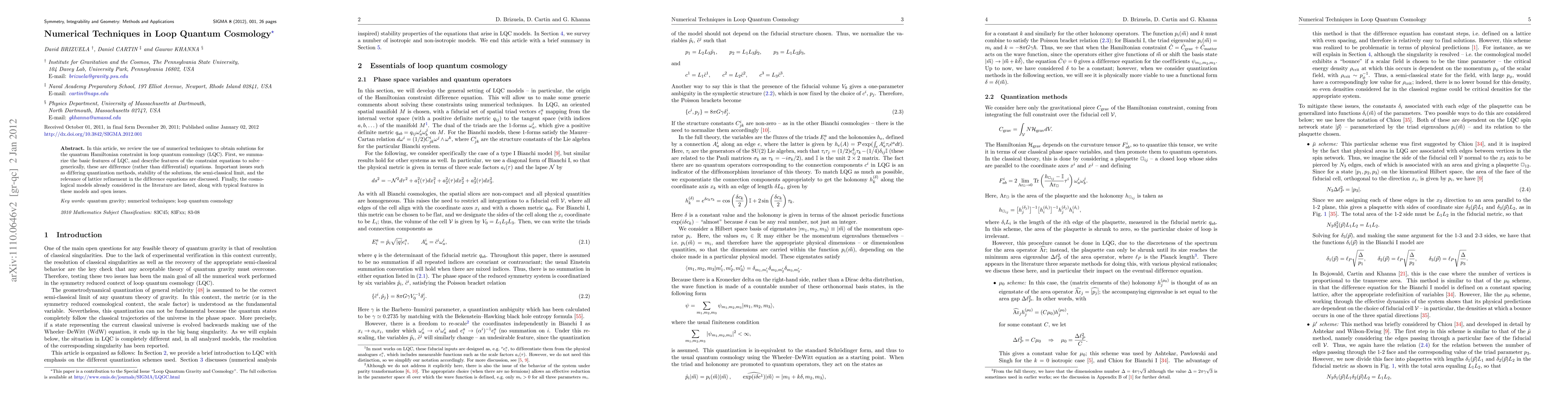 This paper reviews numerical methods for solving the quantum Hamiltonian constraint in loop quantum cosmology (LQC), focusing on difference equations and discussing quantization methods, solution stability, and lattice refinement. It also lists existing cosmological models in LQC and highlights their features and open issues.