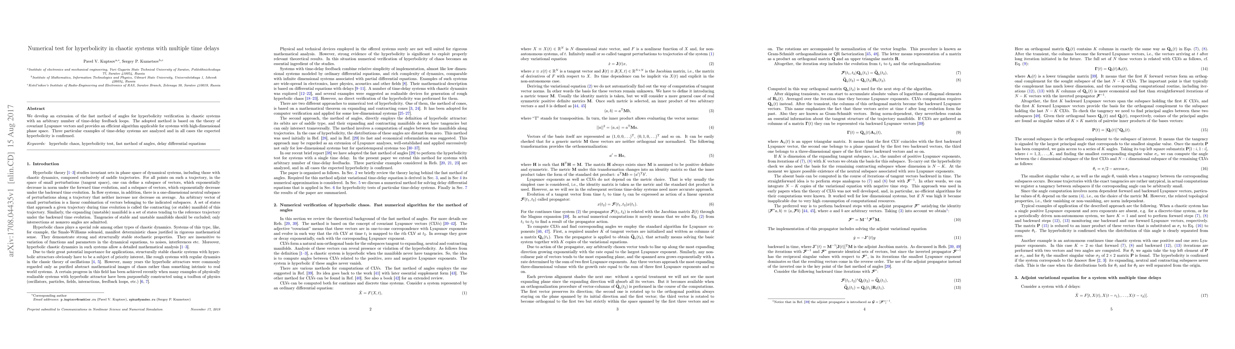 Researchers developed a new method to test hyperbolicity in chaotic systems with multiple time delays, confirming hyperbolicity in three examples.