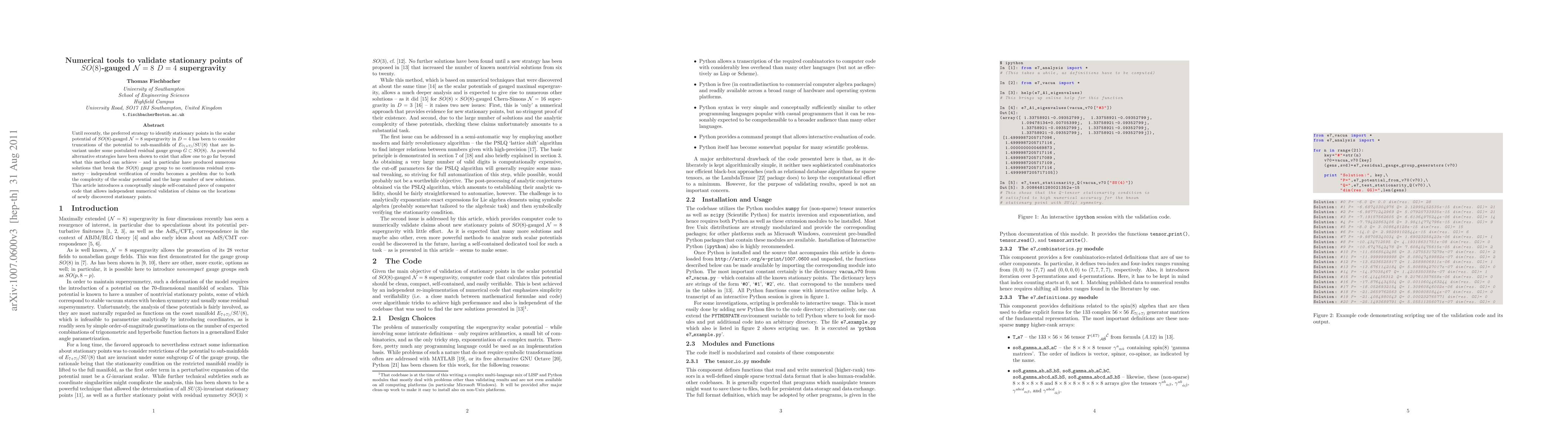 This paper introduces a numerical tool for validating stationary points in the scalar potential of SO(8)-gauged N=8 D=4 supergravity, addressing the complexity and volume of new solutions beyond traditional truncation methods. The provided code offers a self-contained means for independent verification of these newly discovered solutions.
