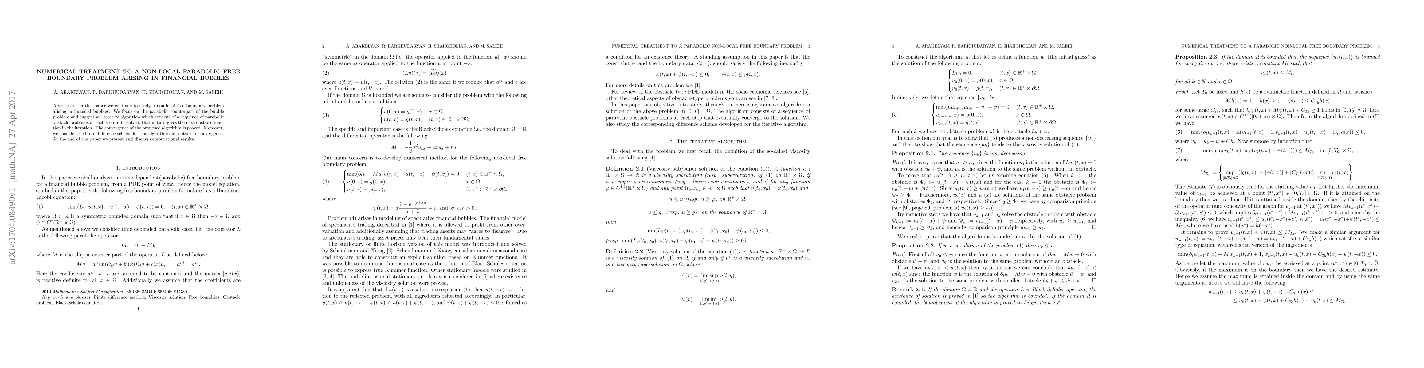 In this paper we continue to study a non-local free boundary problem arising in financial bubbles. We focus on the parabolic counterpart of the bubble problem and suggest an iterative algorithm which consists of a sequence of parabolic obstacle problems at each step to be solved, that in turn gives the next obstacle function in the iteration. The convergence of the proposed algorithm is proved. Moreover, we consider the finite difference scheme for this algorithm and obtain its convergence. At the end of the paper we present and discuss computational results.