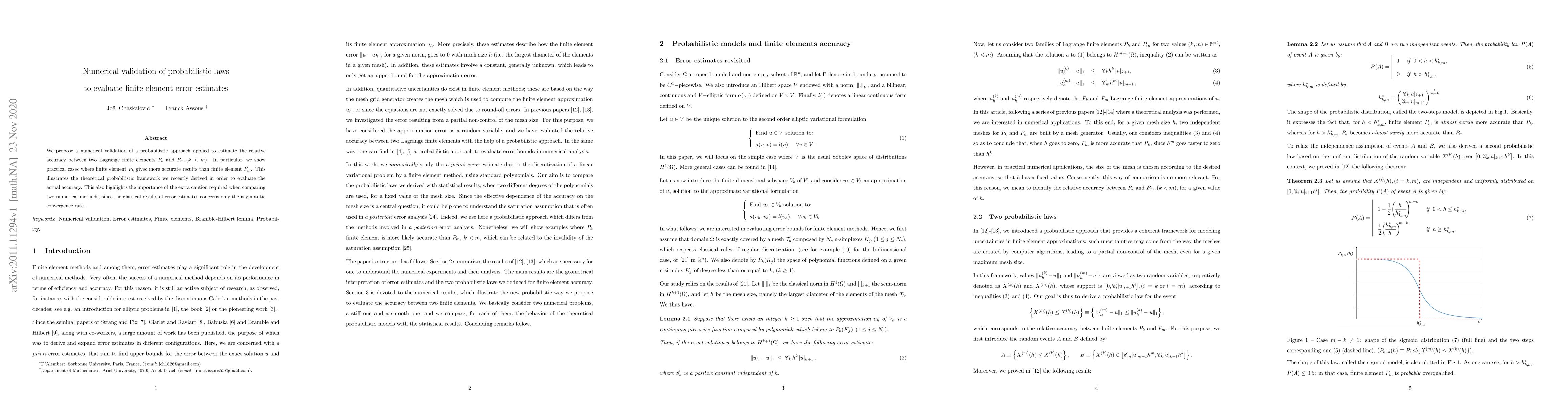 This paper numerically validates a probabilistic method for estimating the relative accuracy between two Lagrange finite elements, $P_k$ and $P_m$, showing instances where $P_k$ yields more accurate results than $P_m$, thus emphasizing the need for careful comparison beyond asymptotic convergence rates.