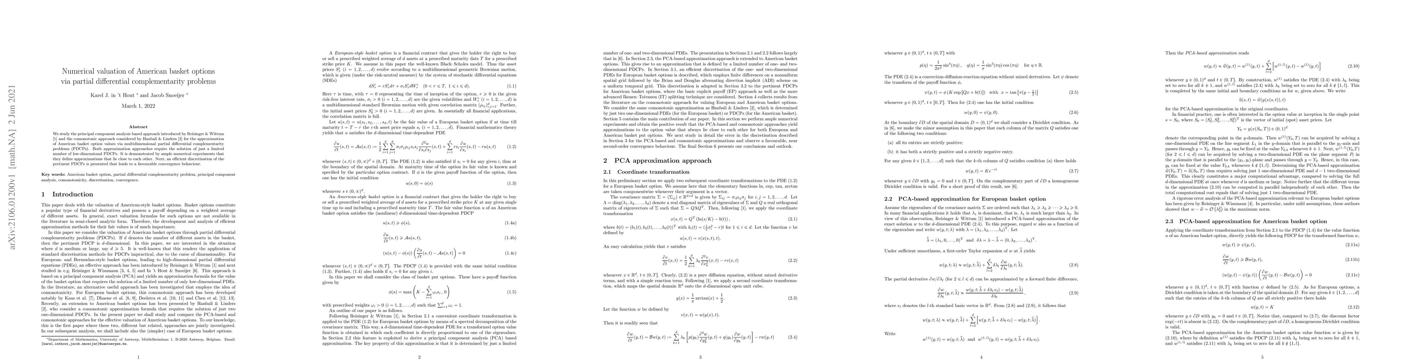 This paper evaluates two methods for approximating American basket option values using partial differential complementarity problems (PDCPs): the principal component analysis approach and the comonotonic approach. Both methods require solving a limited number of low-dimensional PDCPs, and numerical experiments show their approximations are closely aligned. An efficient discretization technique is also introduced, demonstrating favorable convergence behavior.