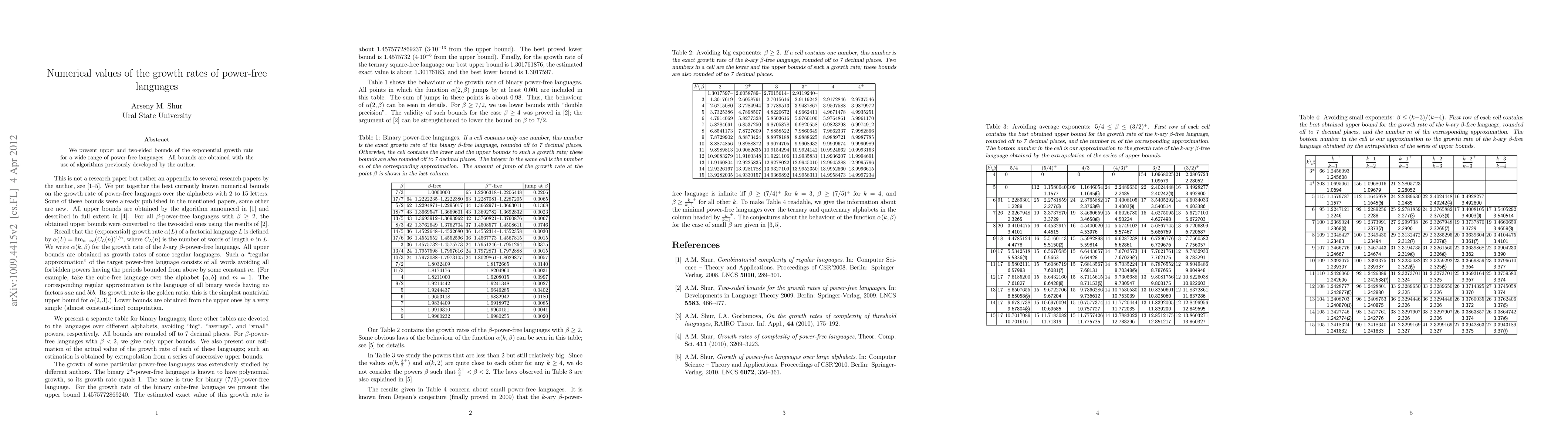 We present upper and two-sided bounds of the exponential growth rate for a wide range of power-free languages. All bounds are obtained with the use of algorithms previously developed by the author.