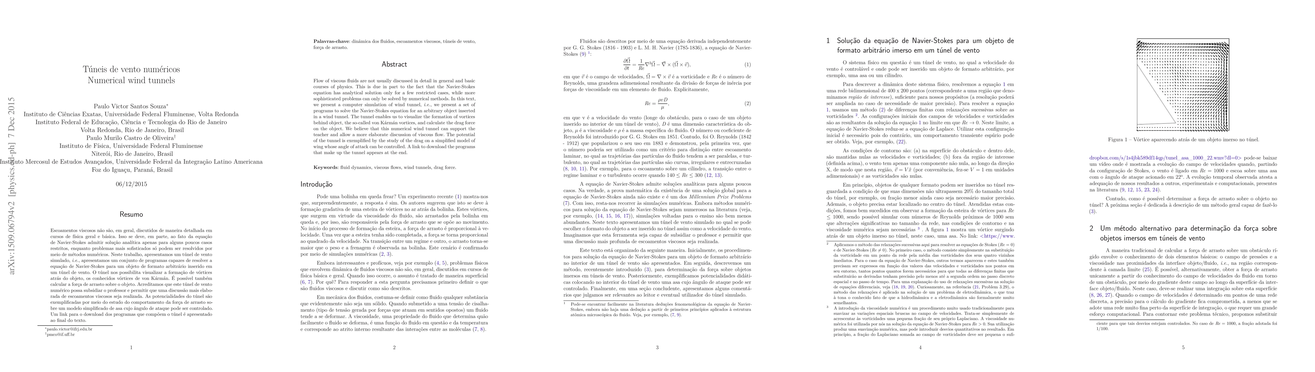 Flow of viscous fluids are not usually discussed in detail in general and basic courses of physics. This is due in part to the fact that the Navier-Stokes equation has analytical solution only for a few restricted cases, while more sophisticated problems can only be solved by numerical methods. In this text, we present a computer simulation of wind tunnel, i.e., we present a set of programs to solve the Navier-Stokes equation for an arbitrary object inserted in a wind tunnel. The tunnel enables us to visualize the formation of vortices behind object, the so-called von K\'arm\'an vortices, and calculate the drag force on the object. We believe that this numerical wind tunnel can support the teacher and allow a more elaborate discussion of viscous flow. The potential of the tunnel is exemplified by the study of the drag on a simplified model of wing whose angle of attack can be controlled. A link to download the programs that make up the tunnel appears at the end.