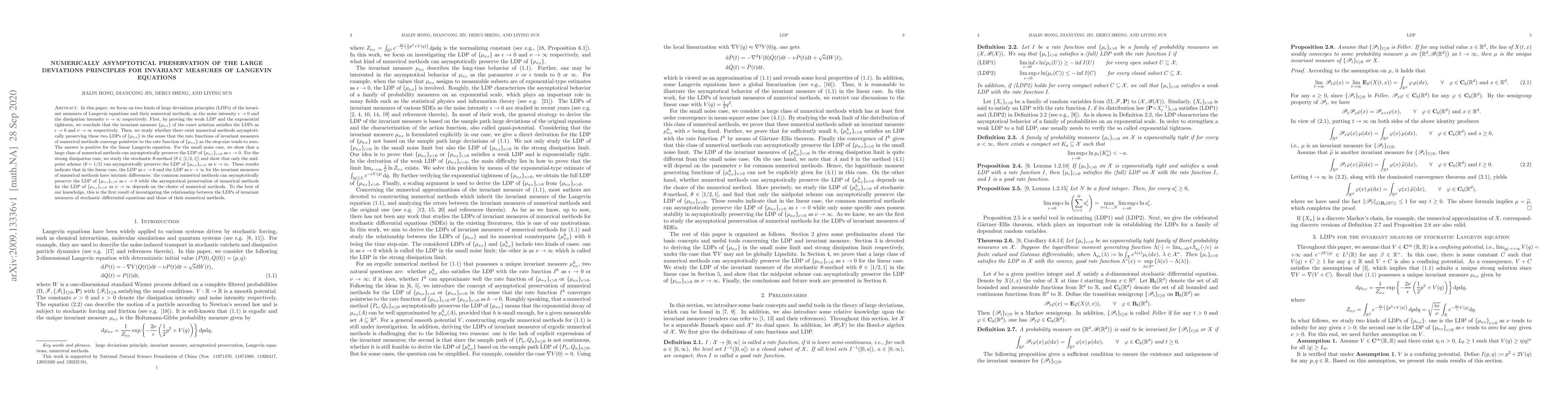 This paper investigates the asymptotic preservation of large deviations principles (LDPs) for invariant measures of Langevin equations through numerical methods. It finds that while many methods can preserve LDPs as noise intensity decreases, only the midpoint scheme preserves LDPs as dissipation intensity increases. This is the first study linking LDPs of stochastic differential equations and their numerical approximations.