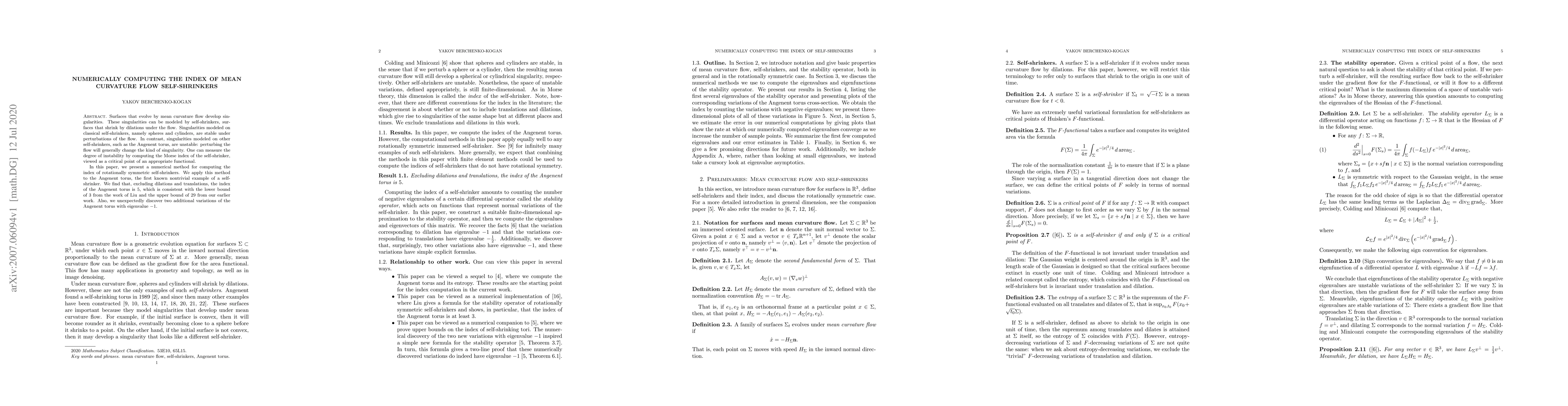 Surfaces that evolve by mean curvature flow develop singularities. These singularities can be modeled by self-shrinkers, surfaces that shrink by dilations under the flow. Singularities modeled on classical self-shrinkers, namely spheres and cylinders, are stable under perturbations of the flow. In contrast, singularities modeled on other self-shrinkers, such as the Angenent torus, are unstable: perturbing the flow will generally change the kind of singularity. One can measure the degree of instability by computing the Morse index of the self-shrinker, viewed as a critical point of an appropriate functional. In this paper, we present a numerical method for computing the index of rotationally symmetric self-shrinkers. We apply this method to the Angenent torus, the first known nontrivial example of a self-shrinker. We find that, excluding dilations and translations, the index of the Angenent torus is $5$, which is consistent with the lower bound of $3$ from the work of Liu and the upper bound of $29$ from our earlier work. Also, we unexpectedly discover two additional variations of the Angenent torus with eigenvalue $-1$.