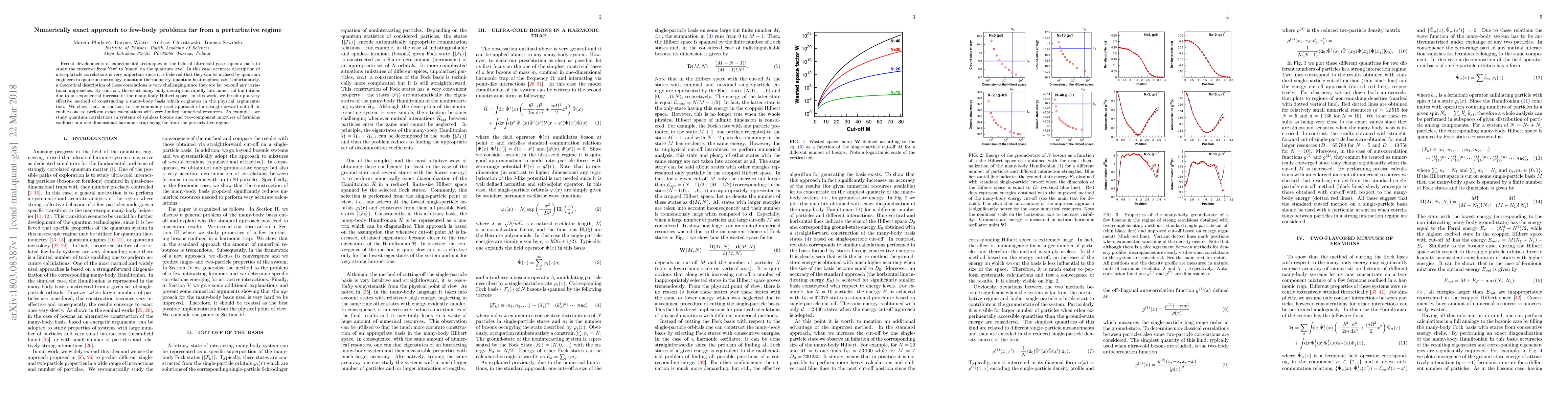 Recent developments of experimental techniques in the field of ultra-cold gases open a path to study the crossover from 'few' to 'many' on the quantum level. In this case, accurate description of inter-particle correlations is very important since it is believed that they can be utilized by quantum engineers in quantum metrology, quantum thermometry, quantum heat engines, {\it etc}. Unfortunately, a theoretical description of these correlations is very challenging since they are far beyond any variational approaches. By contrast, the exact many-body description rapidly hits numerical limitations due to an exponential increase of the many-body Hilbert space. In this work, we brush up a very effective method of constructing a many-body basis which originates in the physical argumentation. We show that, in contrast to the commonly used approach of a straightforward cut-off, it enables one to perform exact calculations with very limited numerical resources. As examples, we study quantum correlations in systems of spinless bosons and two-component mixtures of fermions confined in a one-dimensional harmonic trap being far from the perturbative regime.