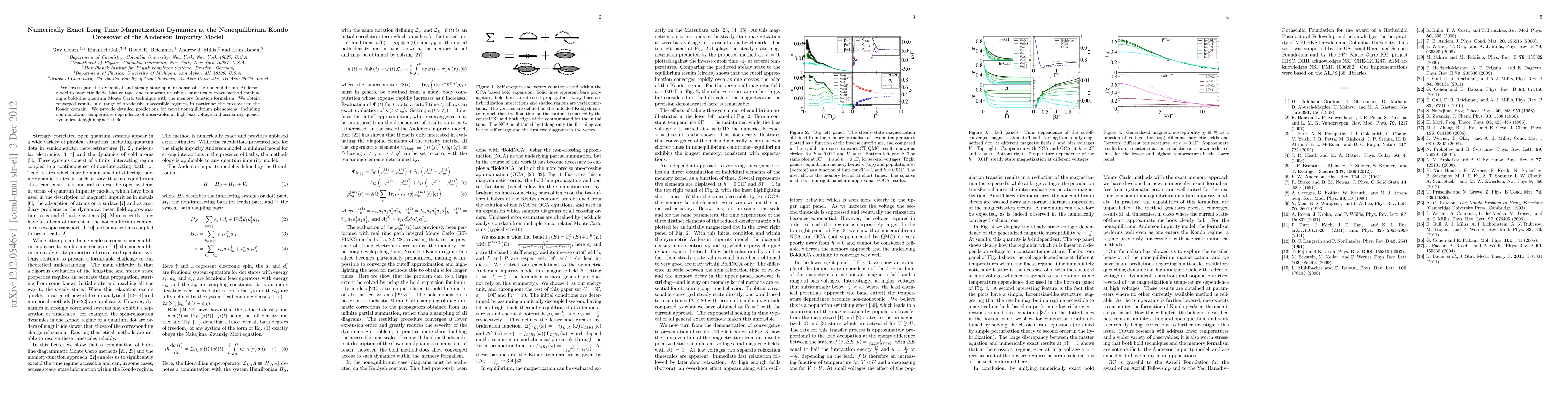 This paper employs a numerically exact method to study the magnetization dynamics of the nonequilibrium Anderson impurity model, revealing novel phenomena at the Kondo crossover, such as non-monotonic temperature dependence and oscillatory quench dynamics. The approach combines bold-line quantum Monte Carlo with memory function formalism to access previously inaccessible regimes.