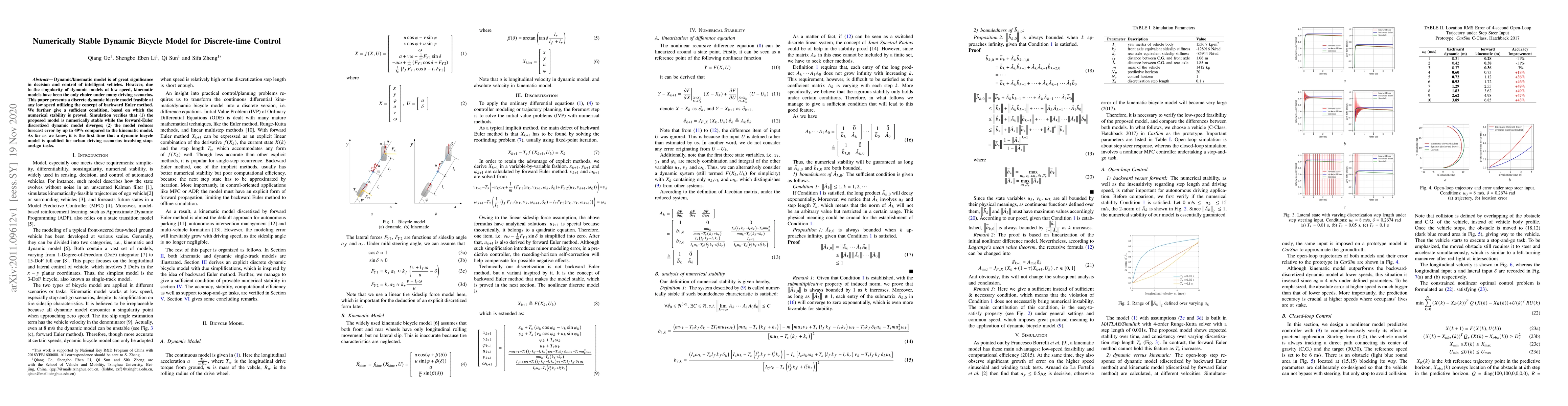 This paper introduces a numerically stable discrete dynamic bicycle model using the backward Euler method, which operates reliably at low speeds. It demonstrates superior numerical stability and up to 49% reduction in forecast error compared to kinematic models, marking the first dynamic model suitable for urban driving scenarios.