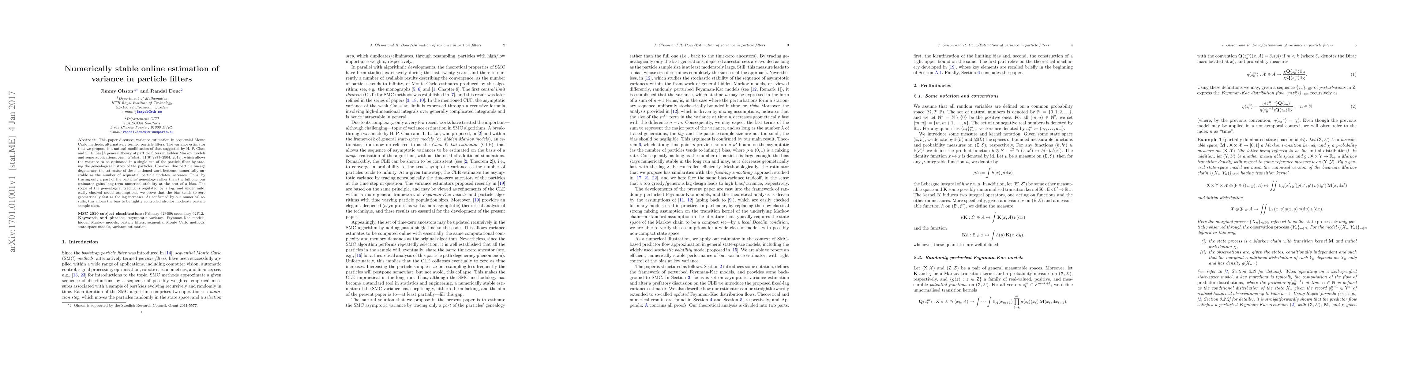 This paper proposes a numerically stable online variance estimator for particle filters, addressing the instability of existing methods due to particle lineage degeneracy. By tracing only a part of the particles' genealogy, the new estimator maintains long-term stability while allowing the bias to geometrically decrease with increased genealogical tracing lag.
