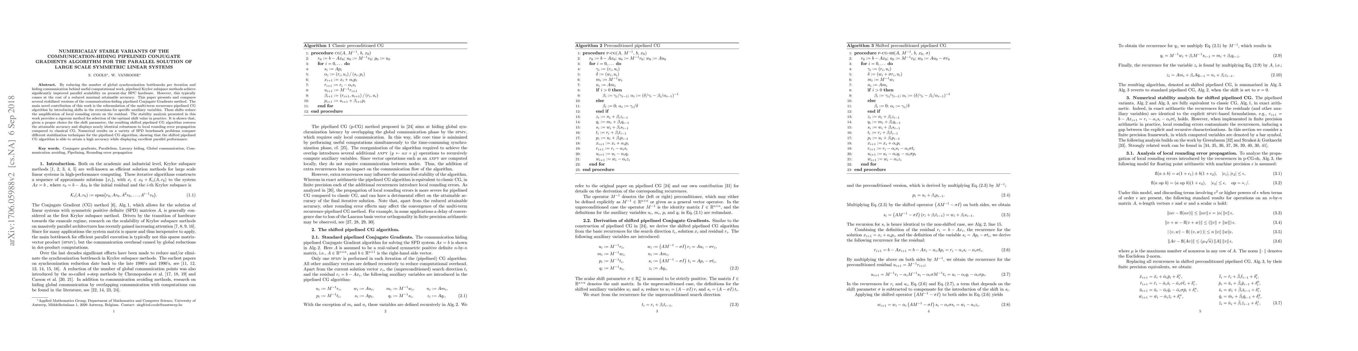 This paper presents stabilized variants of the communication-hiding pipelined Conjugate Gradients method to improve parallel scalability and accuracy for large-scale symmetric linear systems. The proposed shifted pipelined CG algorithm restores accuracy while maintaining robustness, as demonstrated through numerical results on benchmark problems.