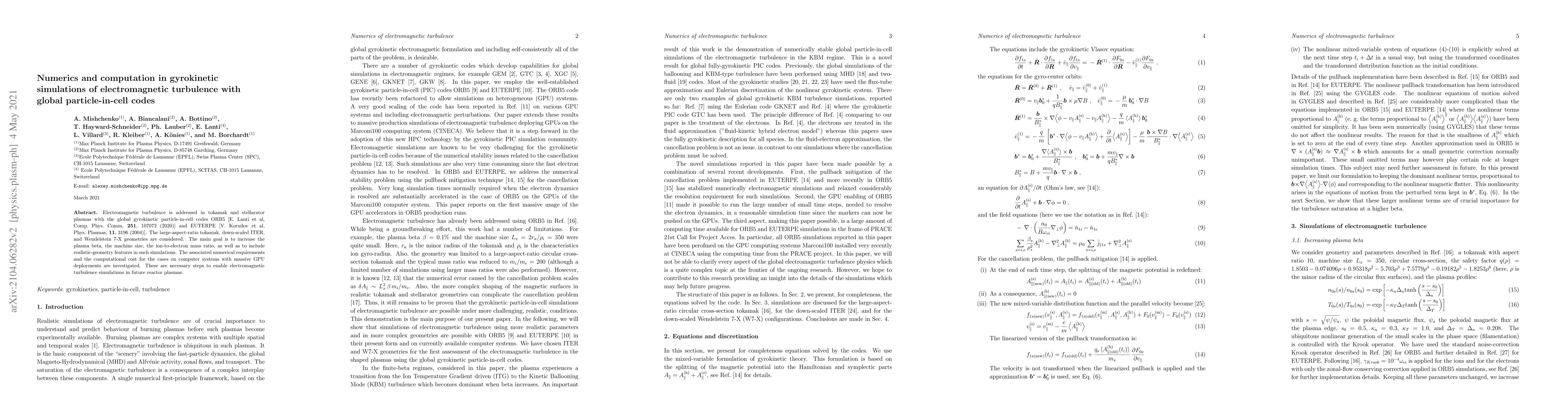 Electromagnetic turbulence is addressed in tokamak and stellarator plasmas with the global gyrokinetic particle-in-cell codes ORB5 [E. Lanti et al, Comp. Phys. Comm, vol. 251, 107072 (2020)] and EUTERPE [V. Kornilov et al, Phys. Plasmas, vol. 11, 3196 (2004)]. The large-aspect-ratio tokamak, down-scaled ITER, and Wendelstein 7-X geometries are considered. The main goal is to increase the plasma beta, the machine size, the ion-to-electron mass ratio, as well as to include realistic-geometry features in such simulations. The associated numerical requirements and the computational cost for the cases on computer systems with massive GPU deployments are investigated. These are necessary steps to enable electromagnetic turbulence simulations in future reactor plasmas.