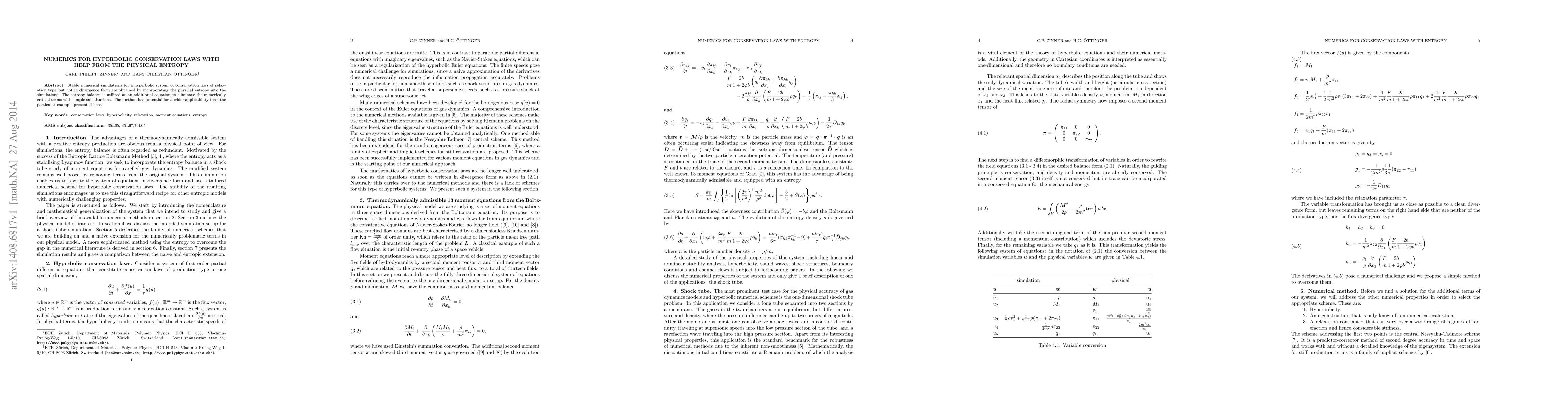 This paper presents a stable numerical simulation method for hyperbolic conservation laws of relaxation type by incorporating the physical entropy. The entropy balance is used to eliminate numerically critical terms, demonstrating potential broader applicability.