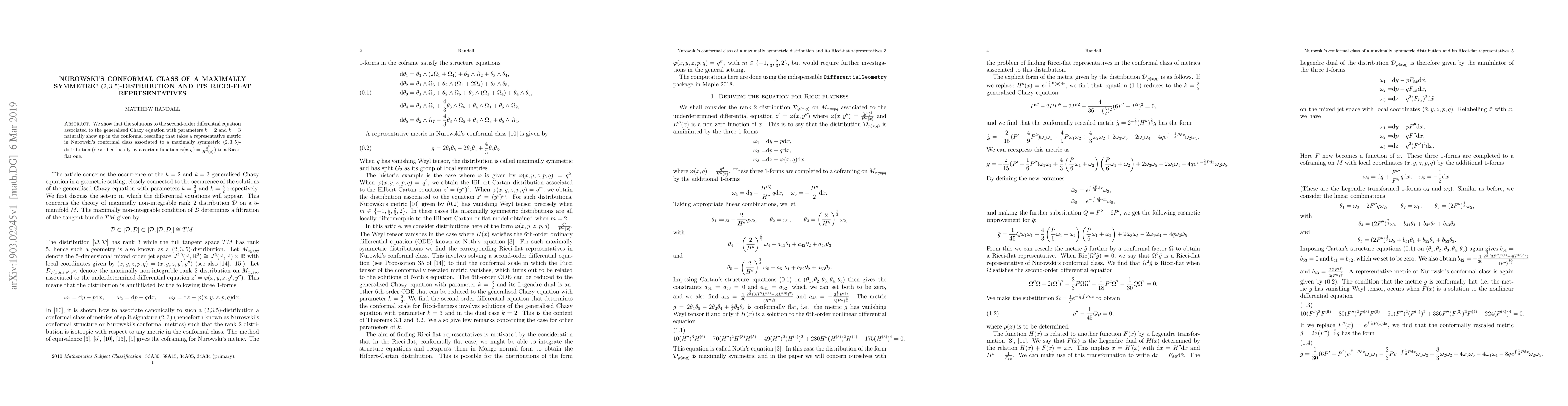 This paper demonstrates that solutions to the generalised Chazy equation with specific parameters emerge in the conformal rescaling transforming a representative metric from Nurowski's conformal class of a maximally symmetric $(2,3,5)$-distribution into a Ricci-flat metric. The transformation is linked to the function $\varphi(x,q)=\frac{q^2}{H''(x)}$.