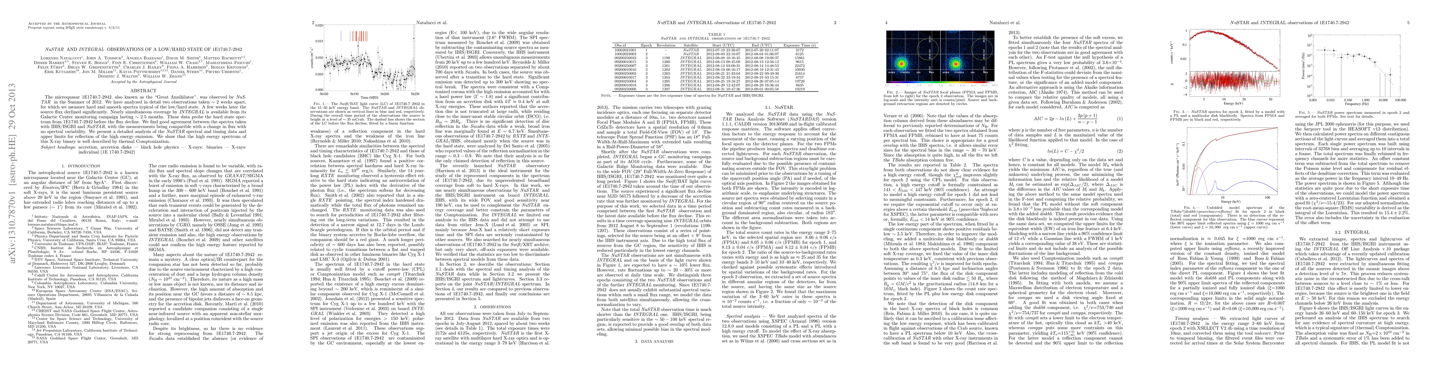 The microquasar 1E1740.7-2942, also known as the "Great Annihilator", was observed by NuSTAR in the Summer of 2012. We have analyzed in detail two observations taken ~2 weeks apart, for which we measure hard and smooth spectra typical of the low/hard state. A few weeks later the source flux declined significantly. Nearly simultaneous coverage by INTEGRAL is available from its Galactic Center monitoring campaign lasting ~2.5 months. These data probe the hard state spectrum from 1E1740.7-2942 before the flux decline. We find good agreement between the spectra taken with IBIS/ISGRI and NuSTAR, with the measurements being compatible with a change in flux with no spectral variability. We present a detailed analysis of the NuSTAR spectral and timing data and upper limits for reflection of the high energy emission. We show that the high energy spectrum of this X-ray binary is well described by thermal Comptonization.