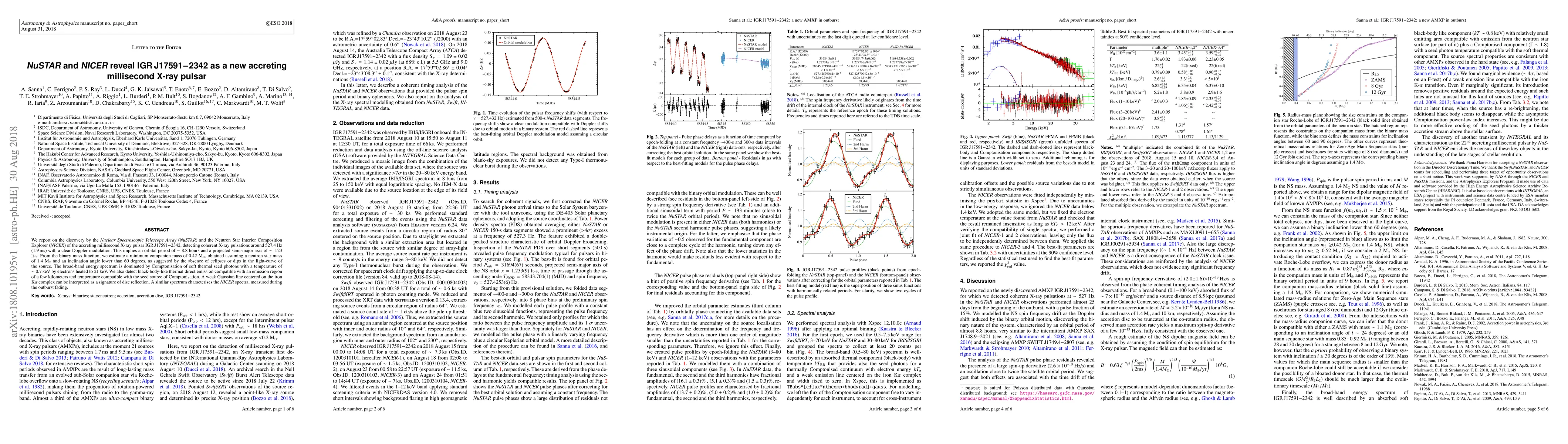 NuSTAR and NICER detect a new accreting millisecond X-ray pulsar IGR J17591-2342 with coherent pulsations and a broad-band energy spectrum dominated by Comptonisation.