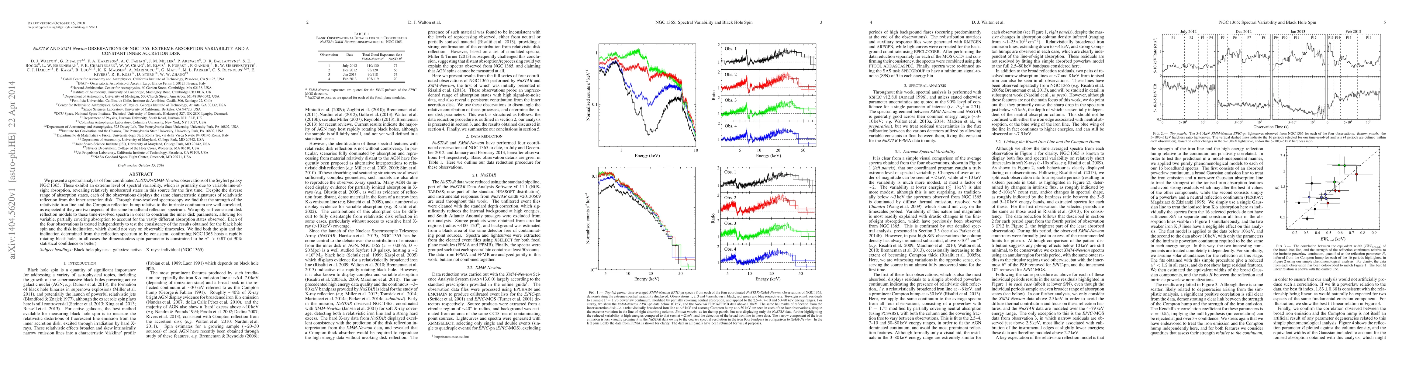 We present a spectral analysis of four coordinated NuSTAR+XMM-Newton observations of the Seyfert galaxy NGC 1365. These exhibit an extreme level of spectral variability, which is primarily due to variable line-of-sight absorption, revealing relatively unobscured states in this source for the first time. Despite the diverse range of absorption states, each of the observations displays the same characteristic signatures of relativistic reflection from the inner accretion disk. Through time-resolved spectroscopy we find that the strength of the relativistic iron line and the Compton reflection hump relative to the intrinsic continuum are well correlated, as expected if they are two aspects of the same broadband reflection spectrum. We apply self-consistent disk reflection models to these time-resolved spectra in order to constrain the inner disk parameters, allowing for variable, partially covering absorption to account for the vastly different absorption states observed. Each of the four observations is treated independently to test the consistency of the results obtained for the black hole spin and the disk inclination, which should not vary on observable timescales. We find both the spin and the inclination determined from the reflection spectrum to be consistent, confirming NGC 1365 hosts a rapidly rotating black hole; in all cases the dimensionless spin parameter is constrained to be a* > 0.97 (at 90% statistical confidence or better).