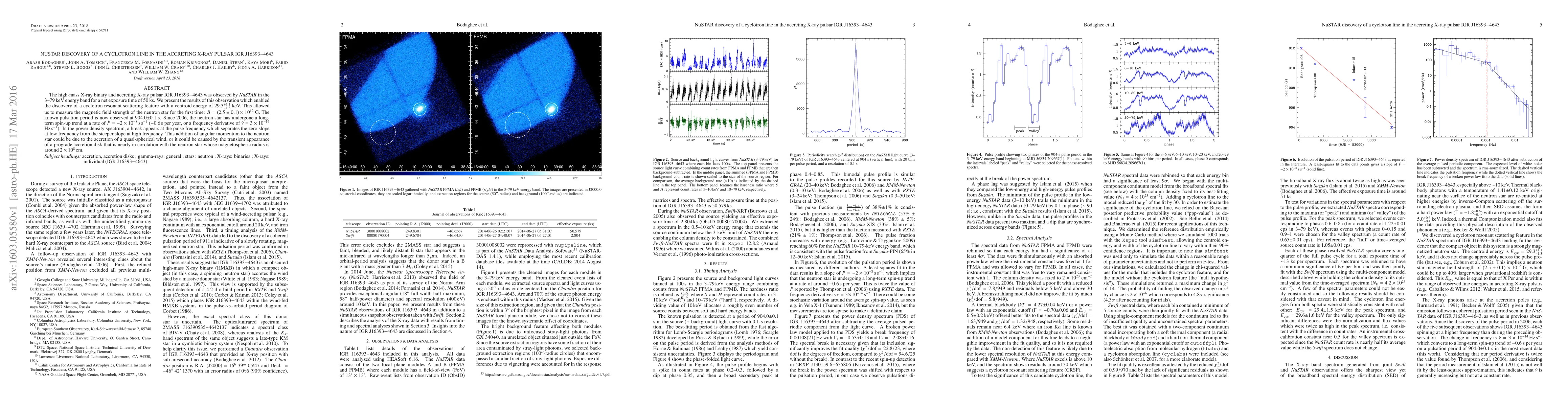 The high-mass X-ray binary and accreting X-ray pulsar IGR J16393-4643 was observed by NuSTAR in the 3-79 keV energy band for a net exposure time of 50 ks. We present the results of this observation which enabled the discovery of a cyclotron resonant scattering feature with a centroid energy of 29.3(+1.1/-1.3) keV. This allowed us to measure the magnetic field strength of the neutron star for the first time: B = (2.5+/-0.1)e12 G. The known pulsation period is now observed at 904.0+/-0.1 s. Since 2006, the neutron star has undergone a long-term spin-up trend at a rate of P' = -2e-8 s/s (-0.6 s per year, or a frequency derivative of nu' = 3e-14 Hz/s ). In the power density spectrum, a break appears at the pulse frequency which separates the zero slope at low frequency from the steeper slope at high frequency. This addition of angular momentum to the neutron star could be due to the accretion of a quasi-spherical wind, or it could be caused by the transient appearance of a prograde accretion disk that is nearly in corotation with the neutron star whose magnetospheric radius is around 2e8 cm.