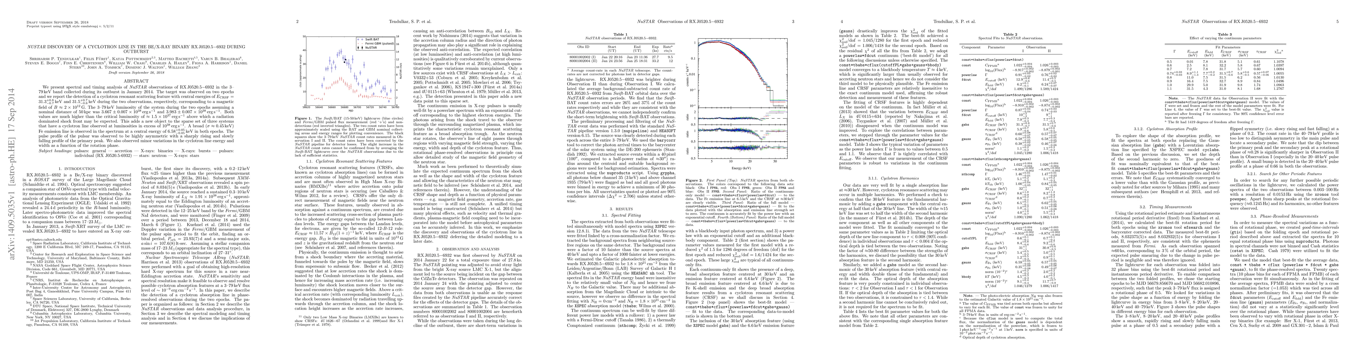 The NuSTAR observations of RX J0520.5-6932 during its 2014 outburst reveal a cyclotron line with central energies of 31.3-31.5 keV, corresponding to a magnetic field strength of approximately \(2 \times 10^{12}\) G. The system's luminosity exceeded \(10^{38}\) erg/s, adding it to the rare group of three systems with observed cyclotron lines at such high luminosities.