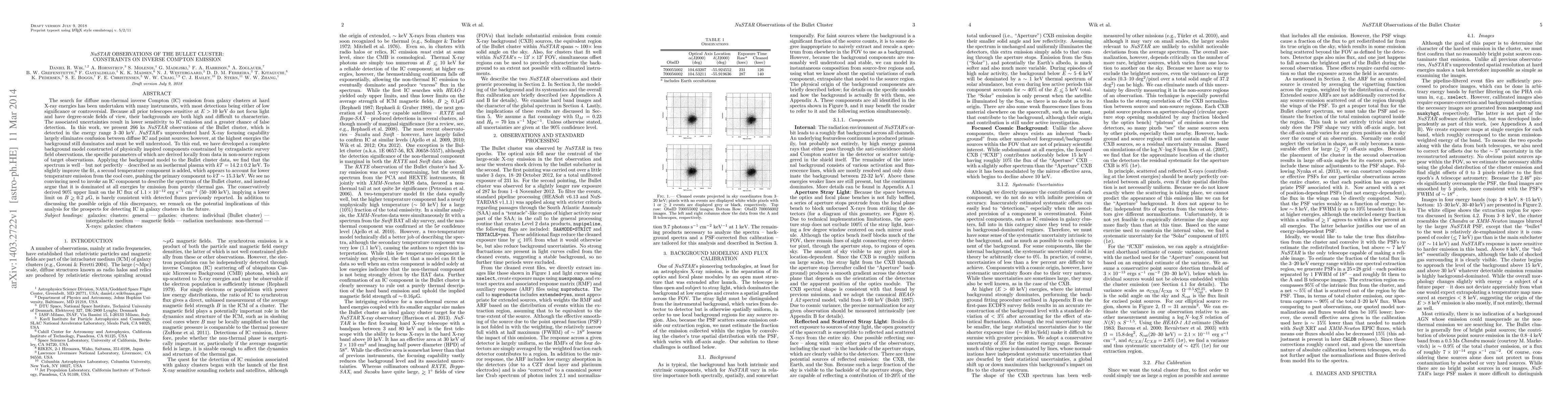 NuSTAR observations of the Bullet cluster reveal no significant diffuse inverse Compton emission, suggesting the cluster's spectrum is dominated by thermal gas. The derived 90% upper limit on IC flux indicates a lower limit on magnetic field strength, raising questions about previous detections.