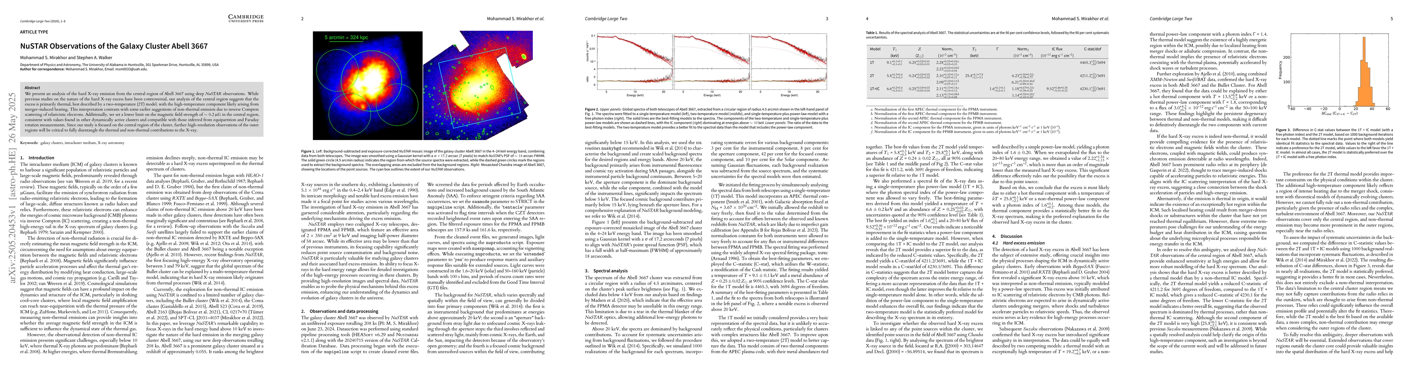 Deep NuSTAR observations of the hard X-ray emission from the central region of Abell 3667 were analyzed using a 2T thermal model.