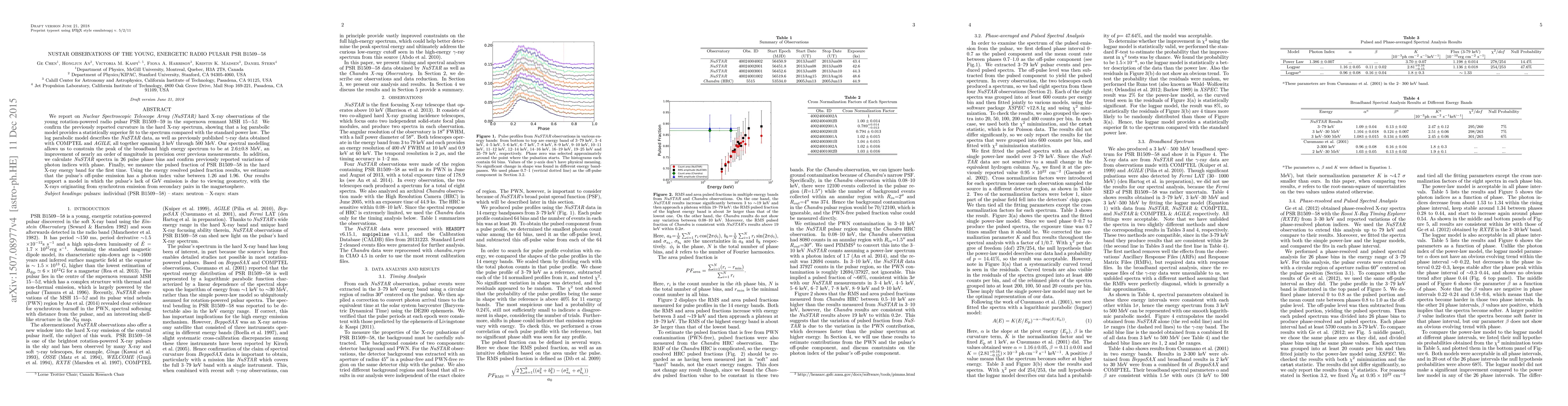 We report on Nuclear Spectroscopic Telescope Array (NuSTAR) hard X-ray observations of the young rotation-powered radio pulsar PSR B1509$-$58 in the supernova remnant MSH 15$-$52. We confirm the previously reported curvature in the hard X-ray spectrum, showing that a log parabolic model provides a statistically superior fit to the spectrum compared with the standard power law. The log parabolic model describes the NuSTAR data, as well as previously published gamma-ray data obtained with COMPTEL and AGILE, all together spanning 3 keV through 500 MeV. Our spectral modelling allows us to constrain the peak of the broadband high energy spectrum to be at 2.6$\pm$0.8 MeV, an improvement of nearly an order of magnitude in precision over previous measurements. In addition, we calculate NuSTAR spectra in 26 pulse phase bins and confirm previously reported variations of photon indices with phase. Finally, we measure the pulsed fraction of PSR B1509$-$58 in the hard X-ray energy band for the first time. Using the energy resolved pulsed fraction results, we estimate that the pulsar's off-pulse emission has a photon index value between 1.26 and 1.96. Our results support a model in which the pulsar's lack of GeV emission is due to viewing geometry, with the X-rays originating from synchrotron emission from secondary pairs in the magnetosphere.
